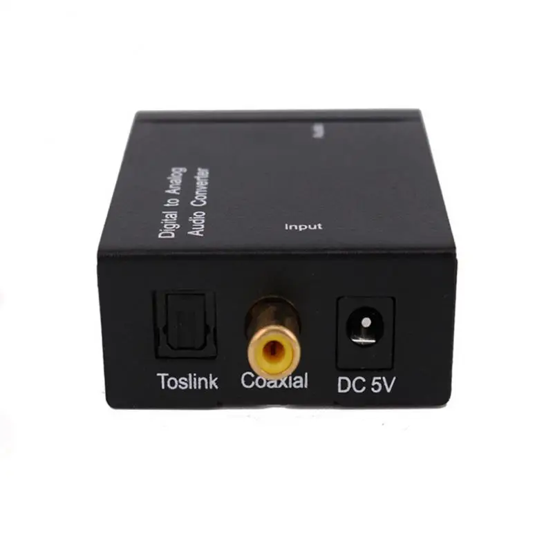 Он преобразует коаксиальные или Toslink цифровые аудиосигналы в аналоговый L/R аудио и доступен для подключения к внешнему устройству, например, усилителю через стандартные разъемы в стиле RCA.
