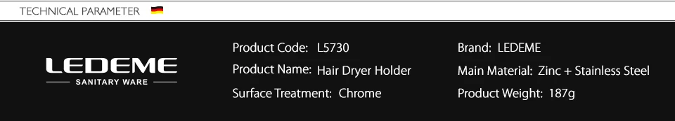 Настенная сушилка для волос LEDEME L5730, настенный держатель из нержавеющей стали для ванной комнаты