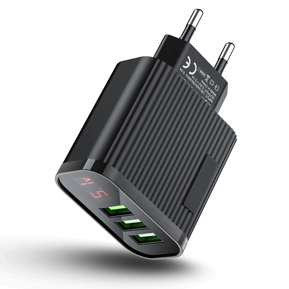 Зарядное устройство с 3 USB-портами и цифровым дисплеем, 5 В, 3 А