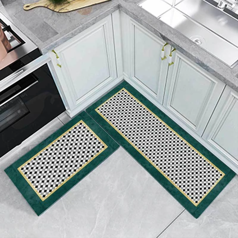 Современные кухонные ковры в скандинавском стиле, роскошные геометрические зеленые напольные дверные коврики для гостиной, Нескользящие Коврики для спальни, прикроватной зоны, одеяло