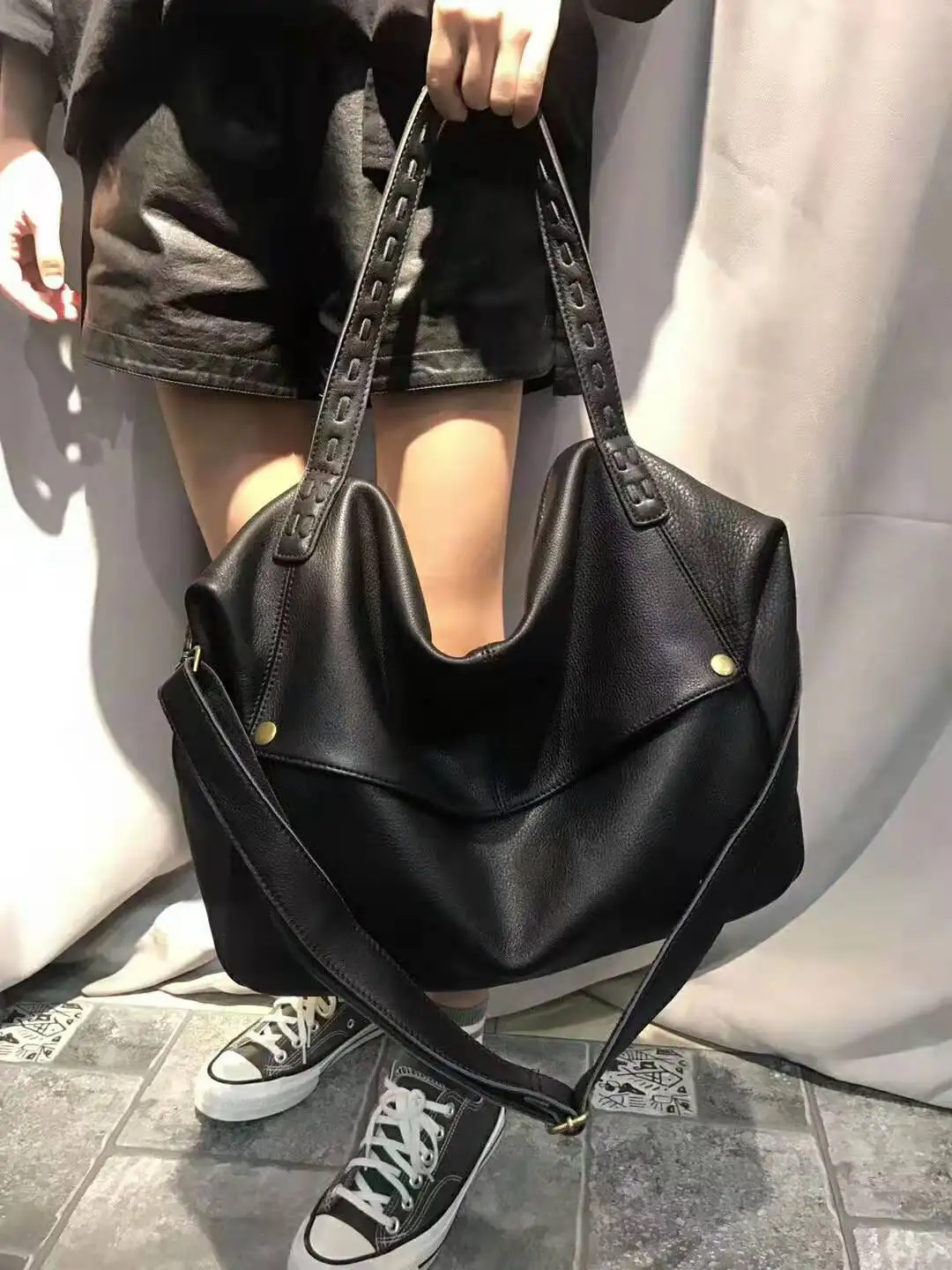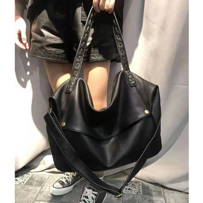 Большая сумка из натуральной кожи, роскошные дизайнерские женские сумки через плечо от известного бренда для 2020, Женская Черная мягкая сумка-тоут для женщин