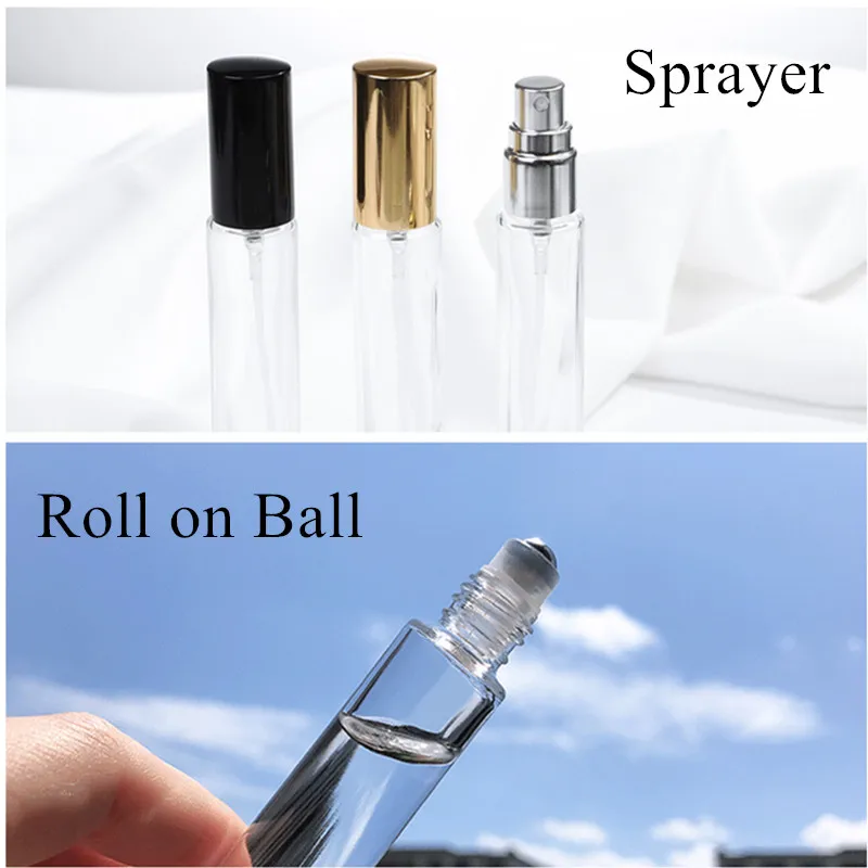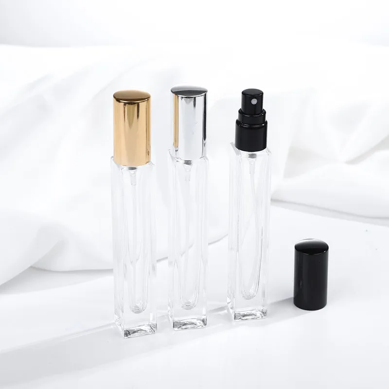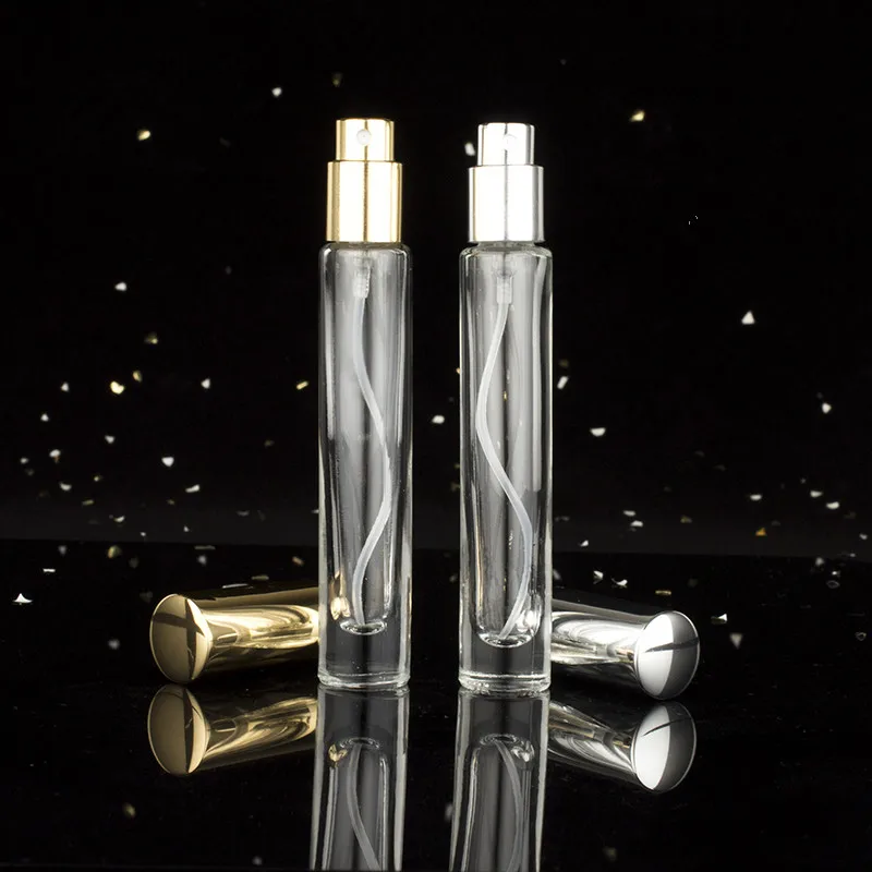 10 шт.лот 10 мл толстый прозрачный стеклянный флакон для духов высокого качества многоразовый флакон-распылитель для духов с черной Золотой серебряной крышкой