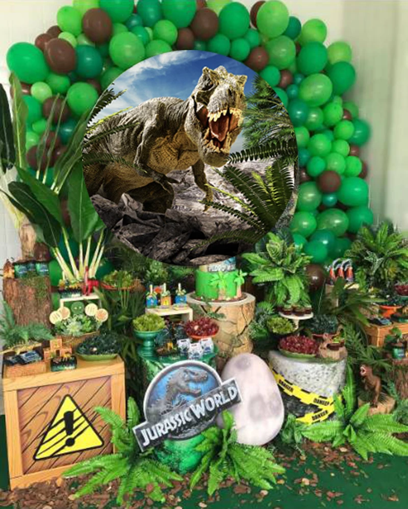 Круглый Круг фон джунгли динозавр ребенок душ День Рождения Декор К...