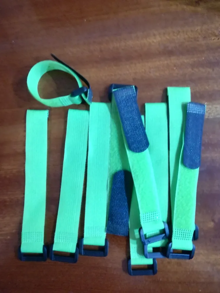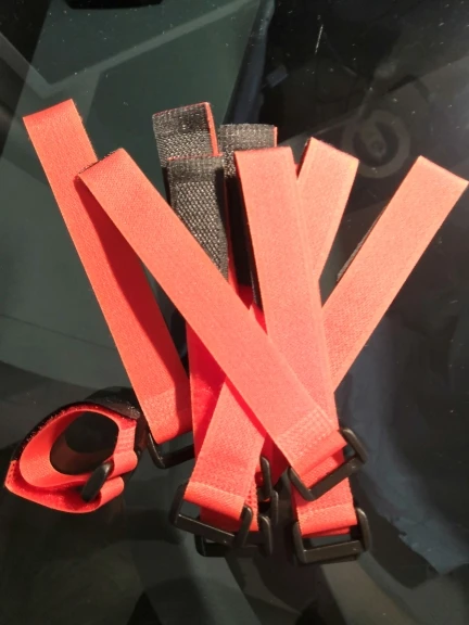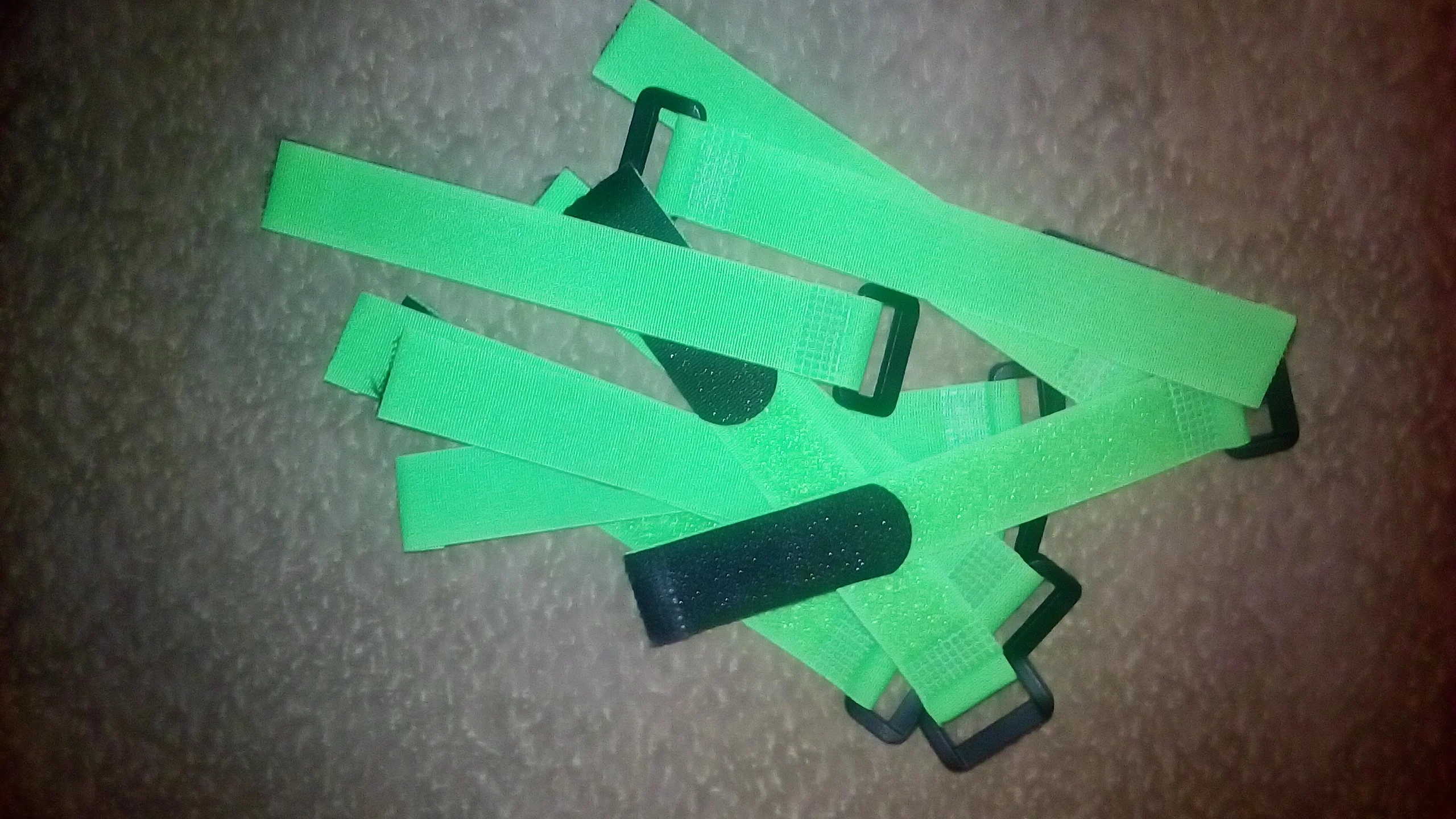 Стяжки пришли. Очень хорошее велкро. Яркий цвет не останется незамеченным!
