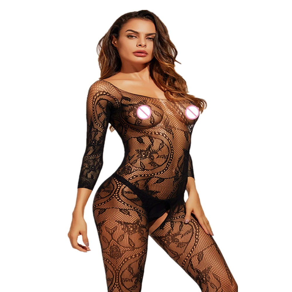 Черное сексуальное нижнее белье, соблазнительное прозрачное женское Белье для сна, летнее нижнее белье, Сетчатое боди, чулки, женские комбинации, Женское боди