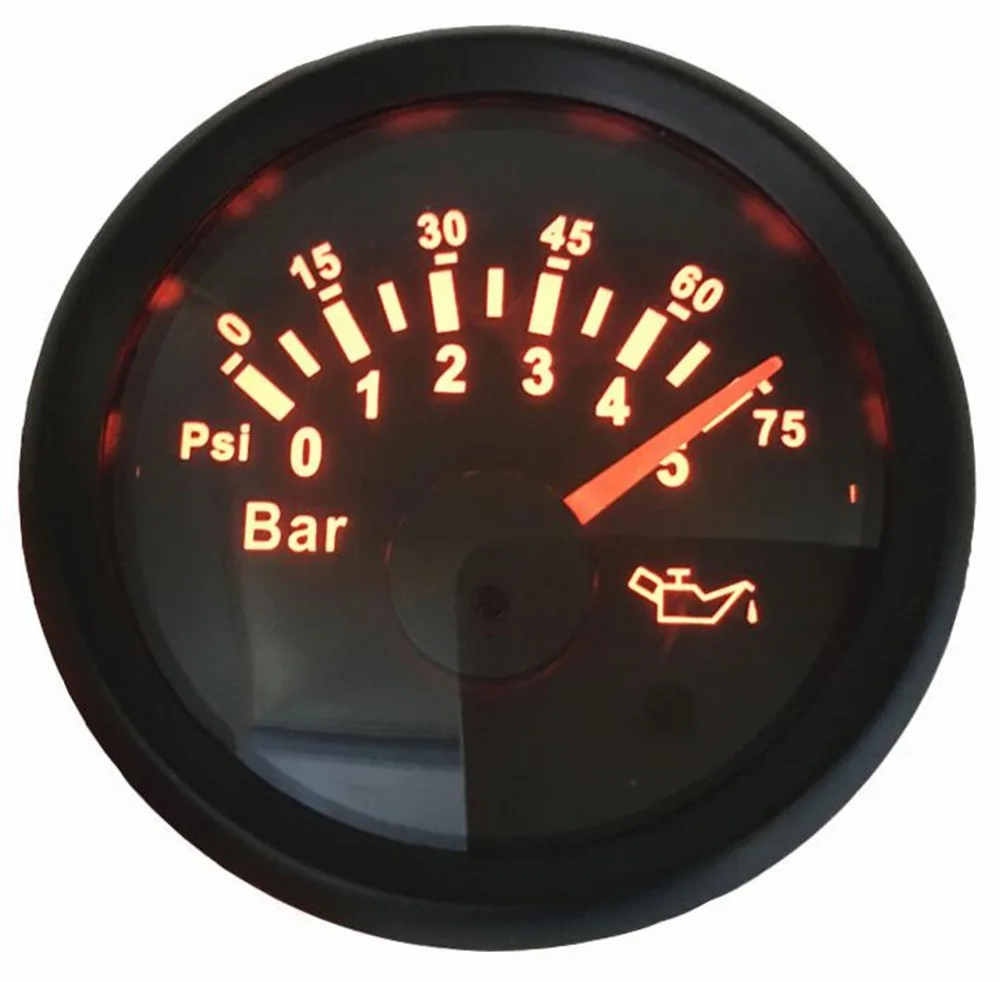 1 шт. Бесплатная доставка 52 мм указатель давления масла 10-184ом 0-5бар черный манометр 0-75Psi красная подсветка для автомобиля лодки
