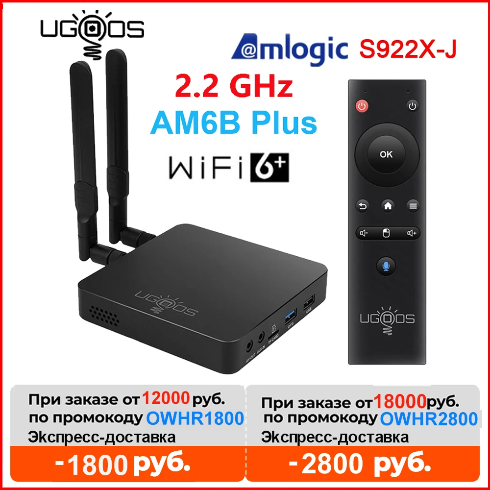 Приставка Смарт-ТВ UGOOS AM6B PLUS, 2,2 ГГц, 4 + 32 ГБ, Android 9,0, Wi-Fi