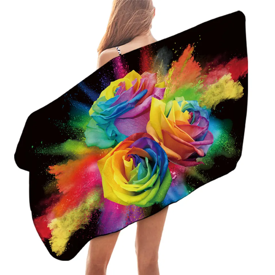 Красочное банное полотенце BeddingOutlet с розами, пляжное полотенце из микрофибры с 3D принтом, коврик для фотографирования и пикника, тонкое одеяло с цветами 75x150 см