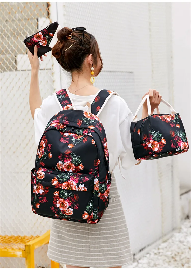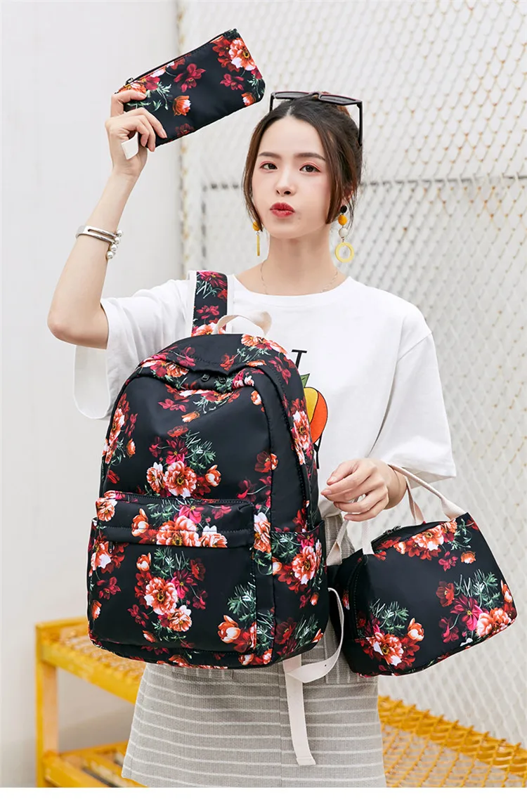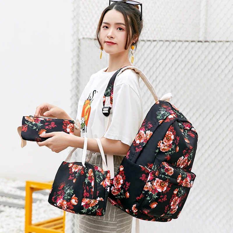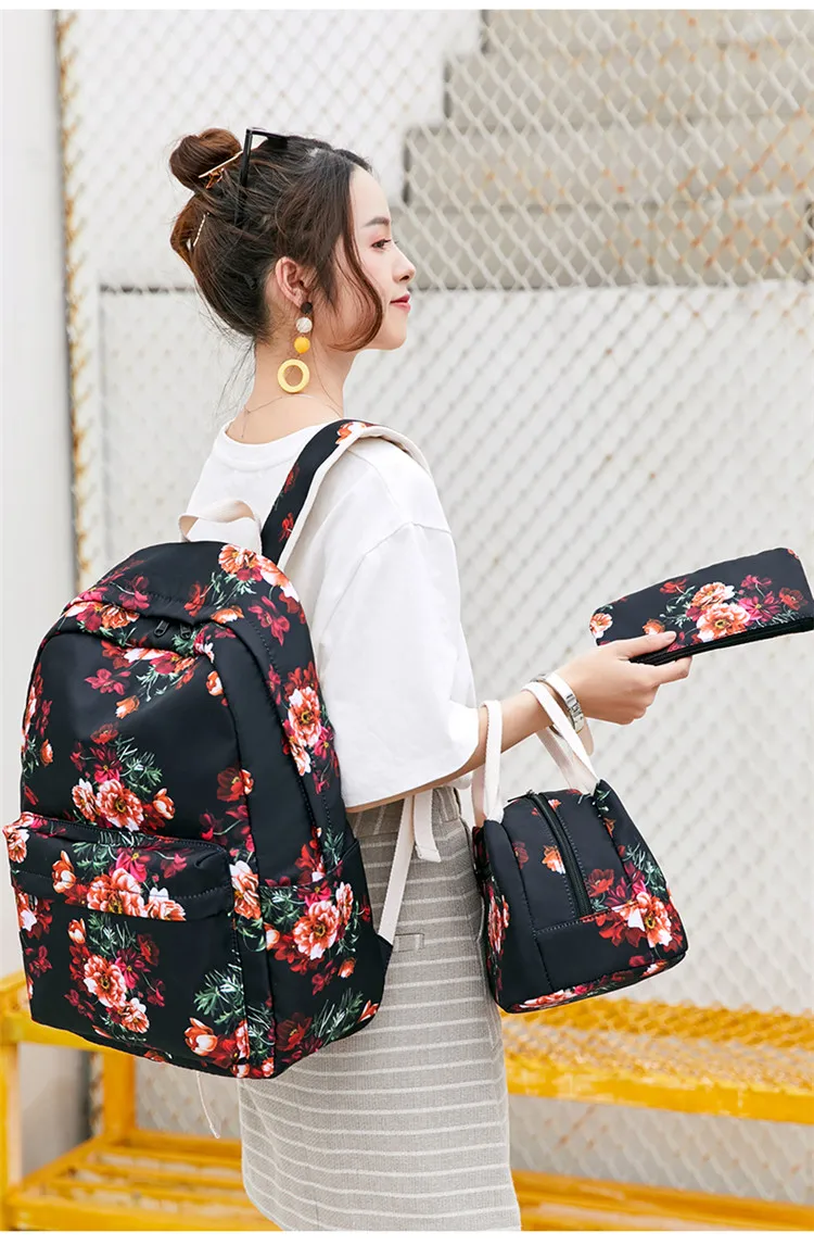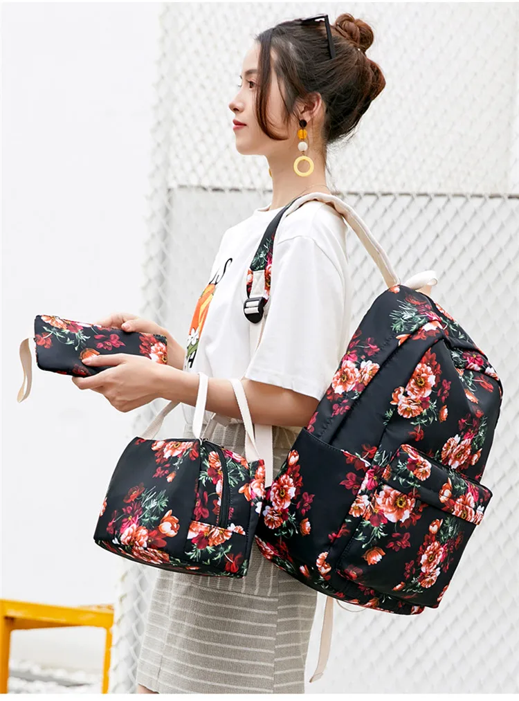 3 шт.компл. женский дорожный рюкзак с цветочным рисунком в китайском стиле, школьные ранцы с цветочным рисунком для женской сумки-карандаша