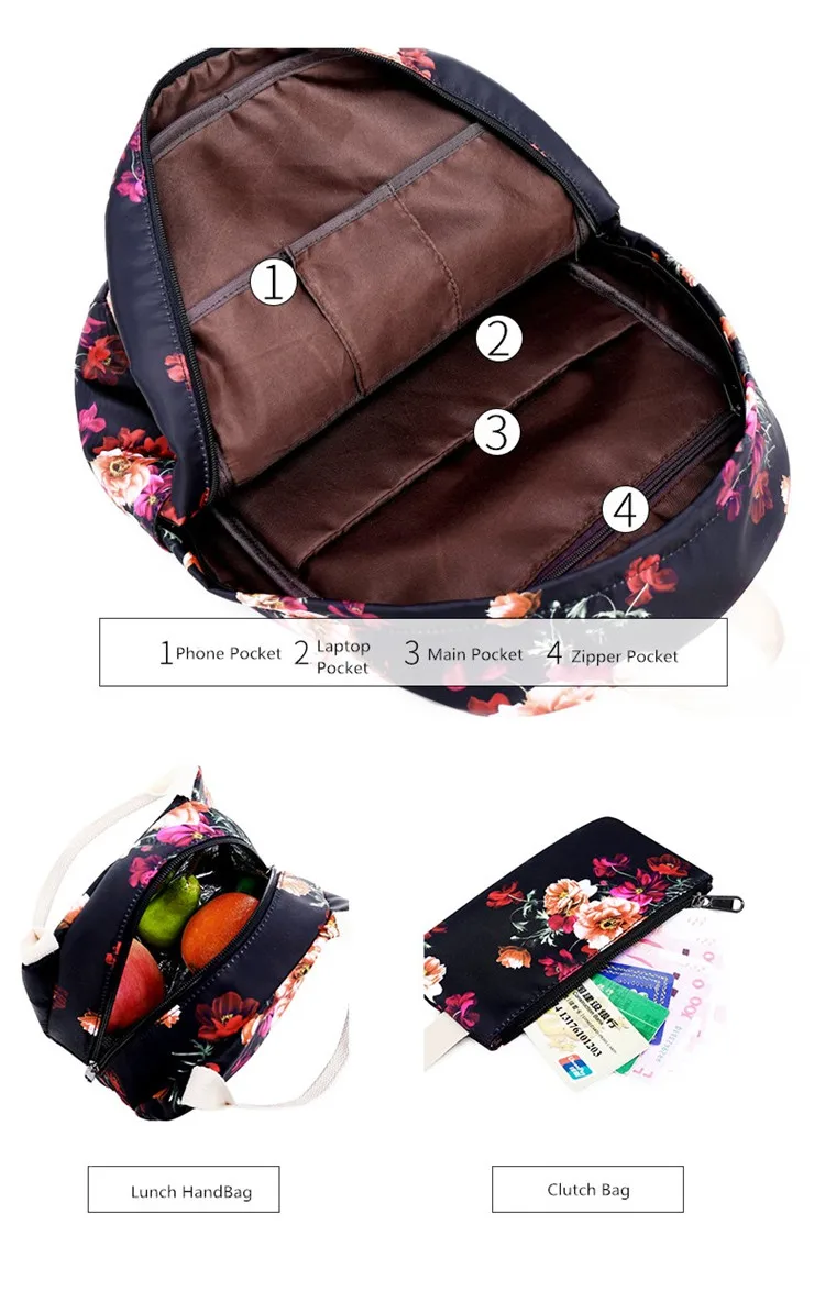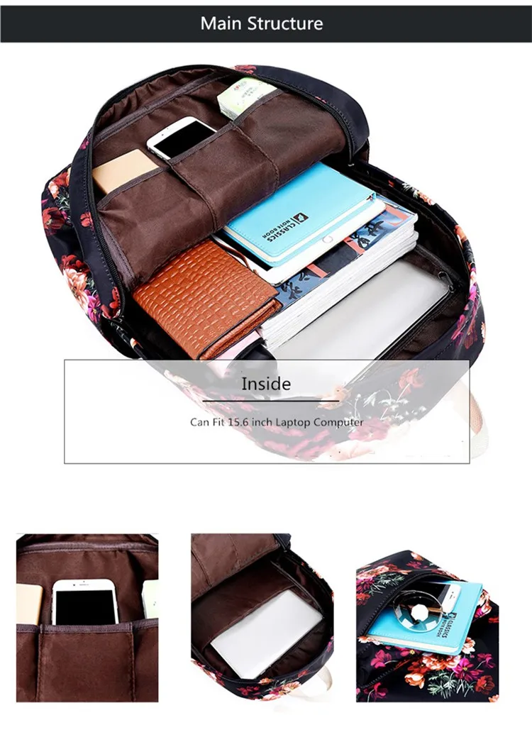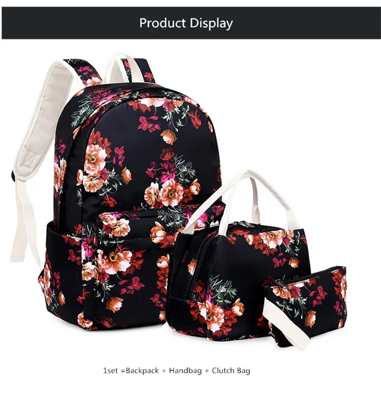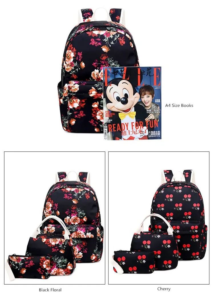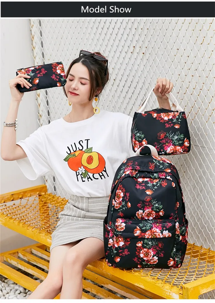 3 шт.компл. женский дорожный рюкзак с цветочным рисунком в китайском стиле, школьные ранцы с цветочным рисунком для женской сумки-карандаша