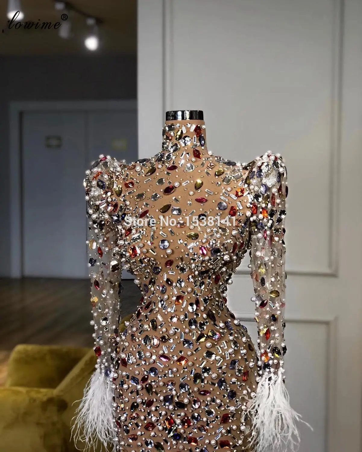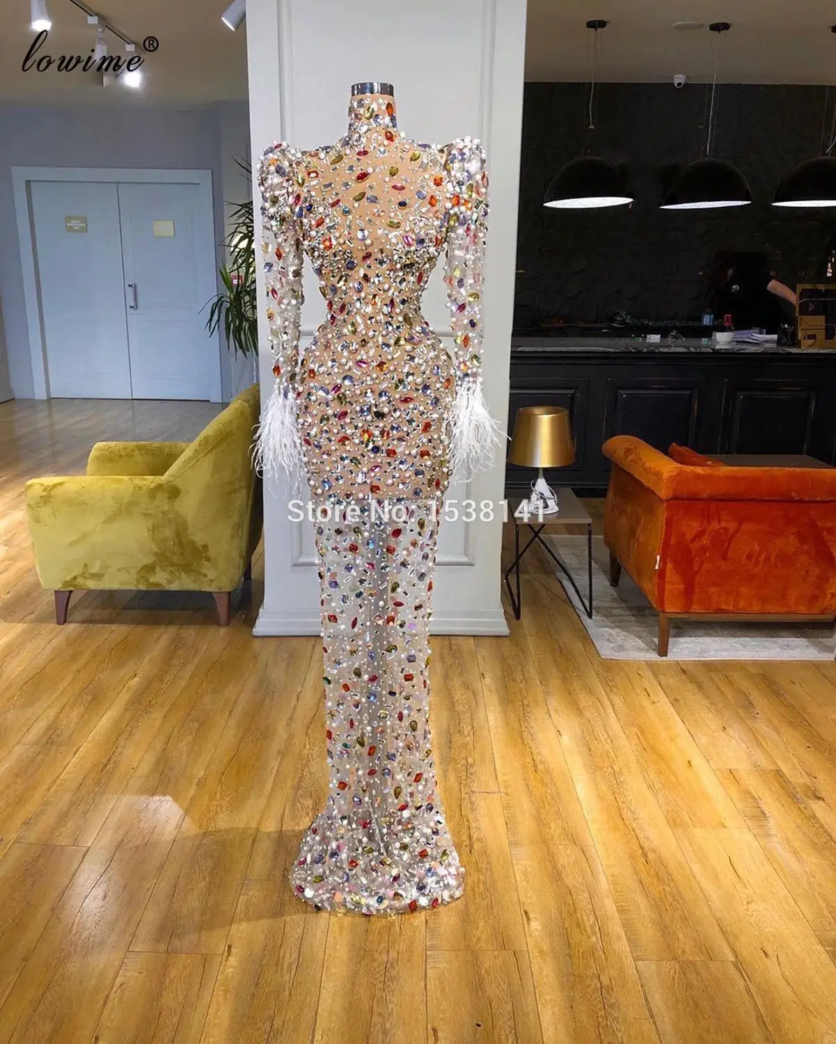 2021 Роскошные Бисер вечерние платья одежда с длинным рукавом Форма...