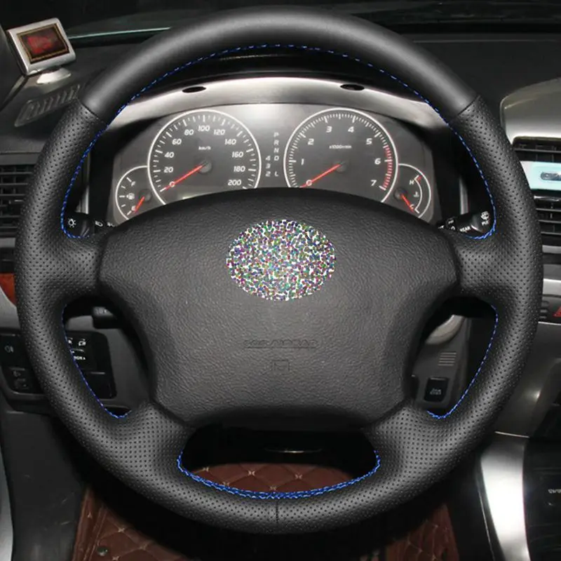 Сшитый вручную черный кожаный самодельный чехол рулевого колеса автомобиля для Toyota Land Cruiser 1995-2007 Land Cruiser Prado 120 2004 - 2009