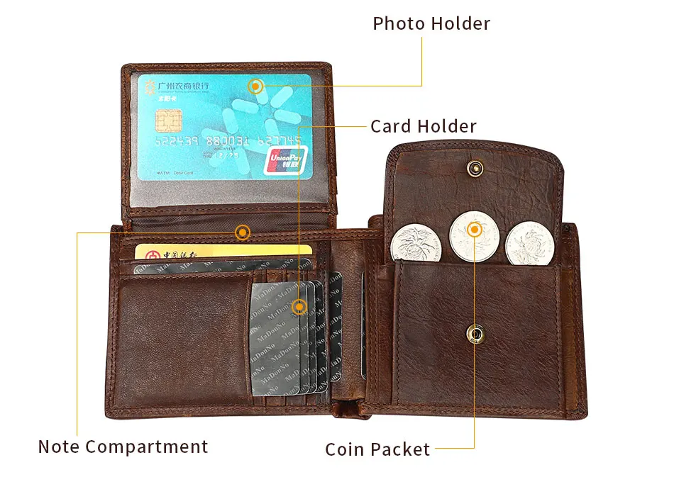 DIENQI мужской кошелек из натуральной кожи и углеволокна, двойной д...