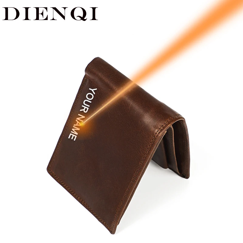 Мужской винтажный кошелек DIENQI из воловьей кожи, тонкий короткий кошелек из натуральной кожи с экустомированной защитой от кражи, Rfid, волшебные Кошельки для монет, Walet Man
