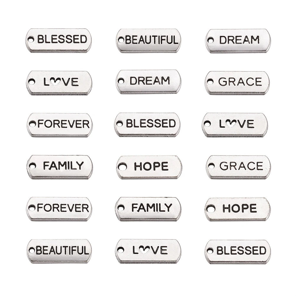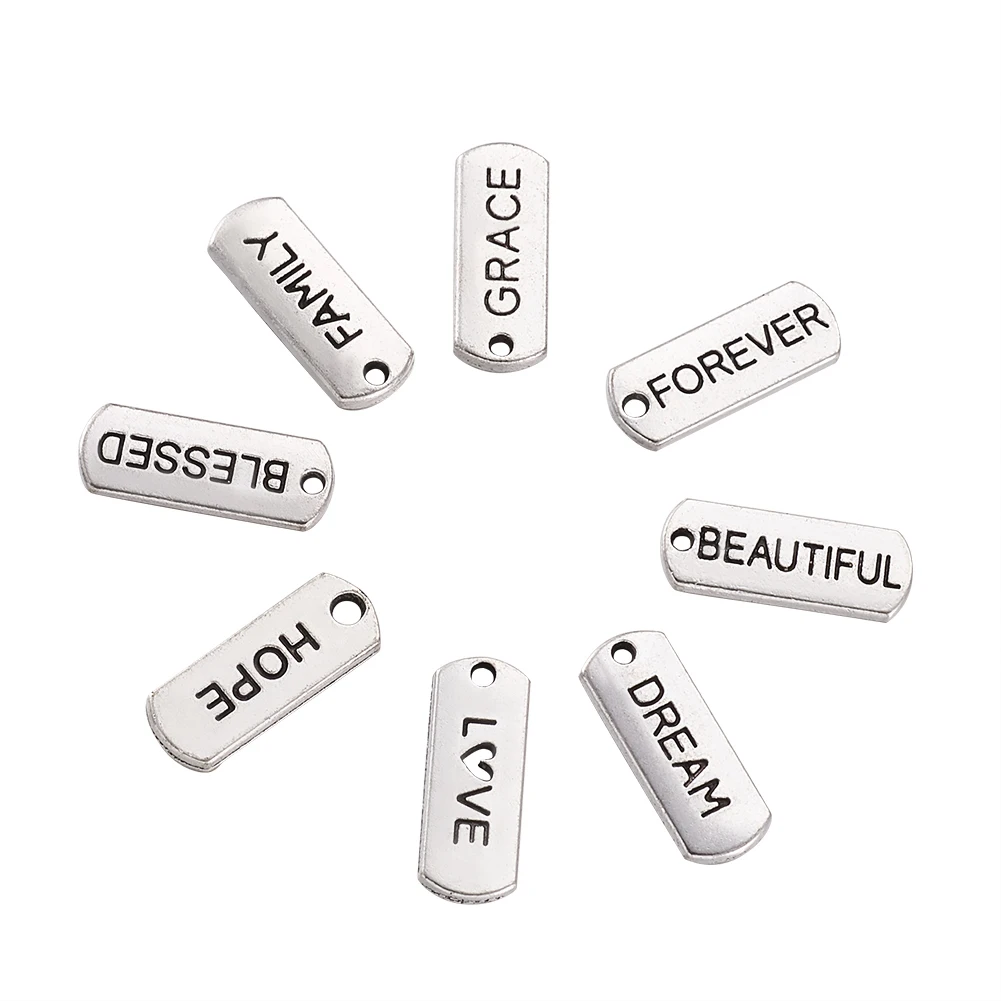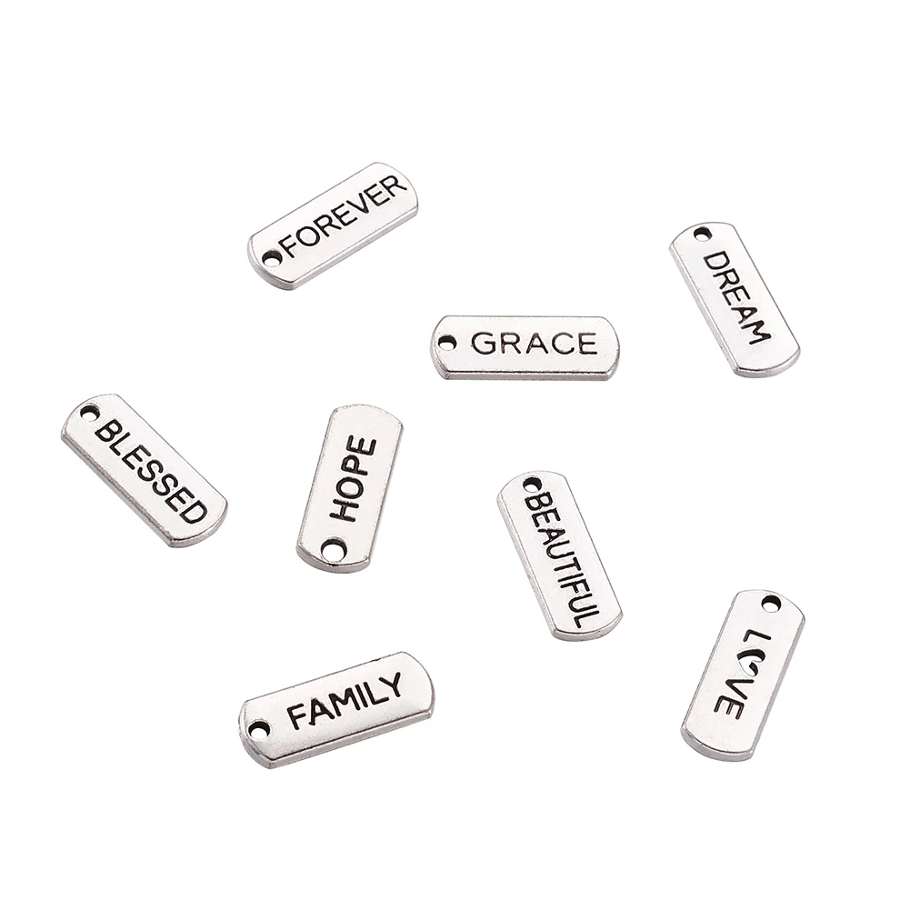 40 шт.компл. Подвески в виде слов, подвески из сплава для DIY ювелирных изделий, ожерелья, браслеты, антикварные серебряные цвета, смешанный стиль 8x21x2mm