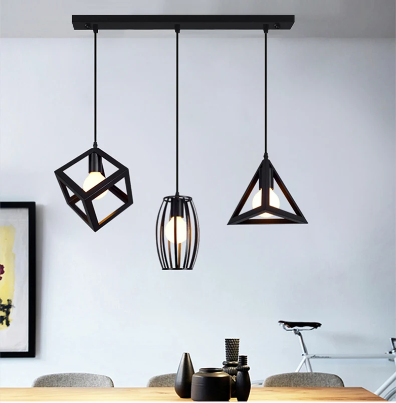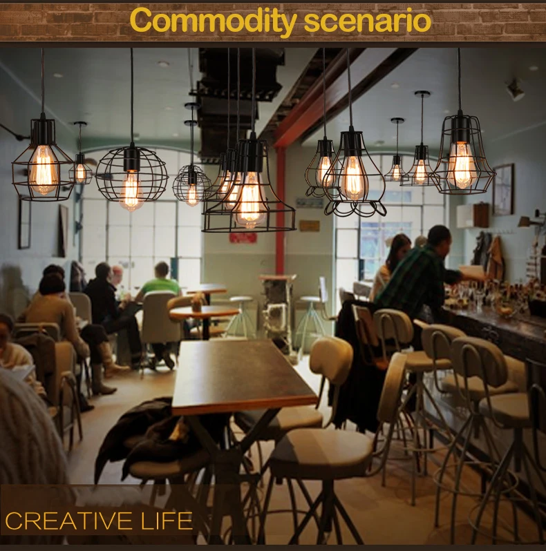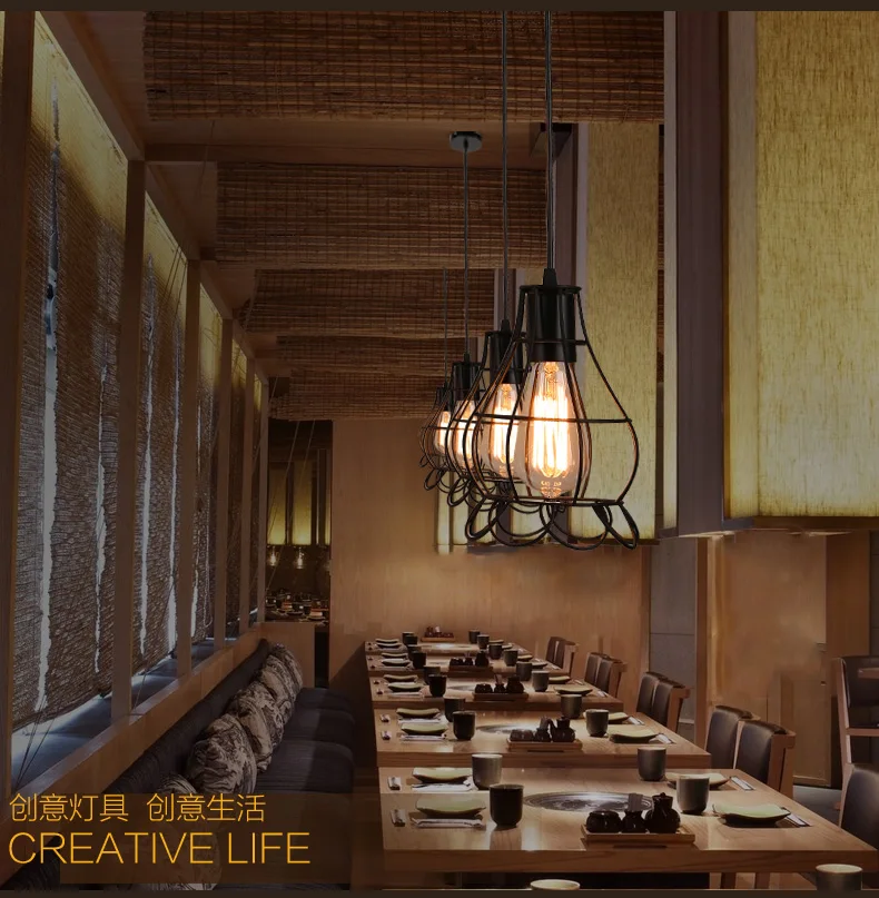 Nordic подвесные светильники промышленный Винтаж Лофт лампа железная клетка для искусства черный подвесной светильник кухня гостиная для E27 90-250 В Светодиодная лампа