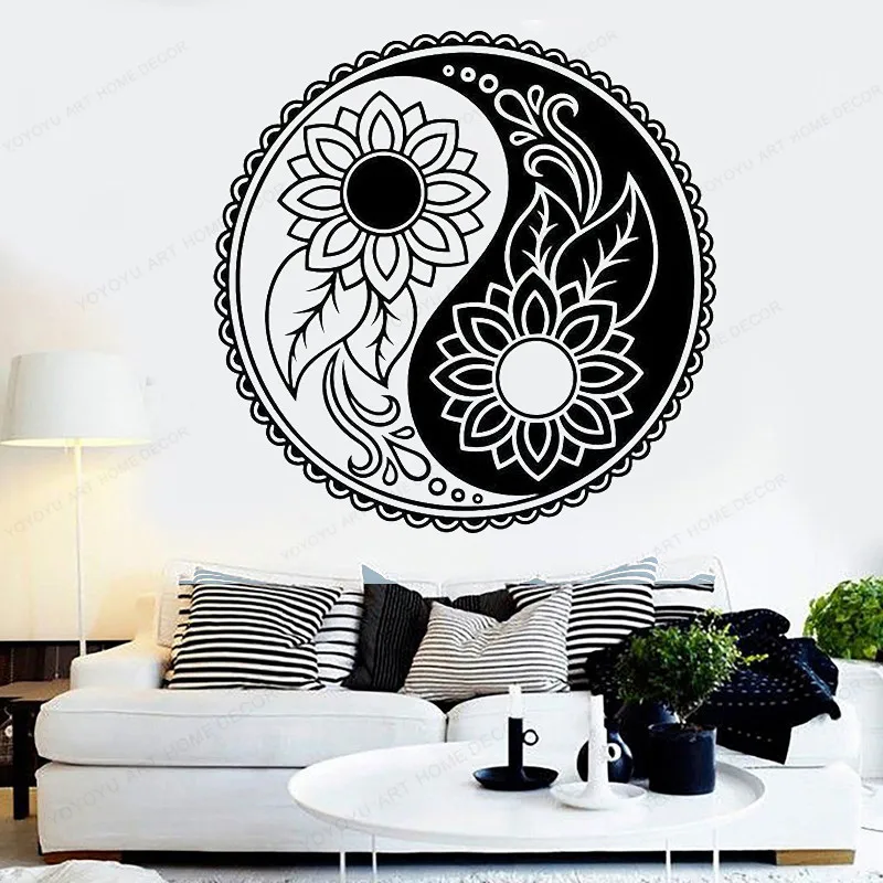 Настенная Наклейка с изображением цветов Инь Янь, виниловая настенная наклейка для спальни с изображением медитации, йоги, дзен, выдоха, цветов, домашняя Настенная Наклейка JH87