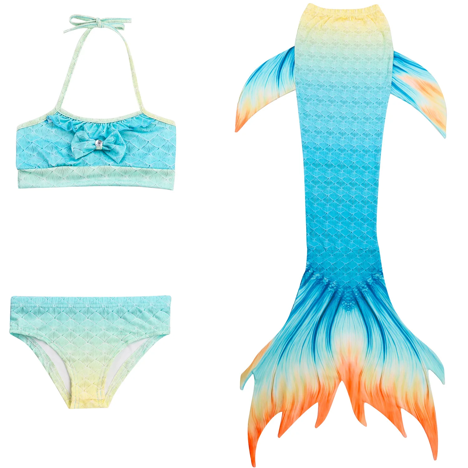 Комплект из 3 предметов: 1 бюстгальтер + 1 шорт + 1 хвост русалки