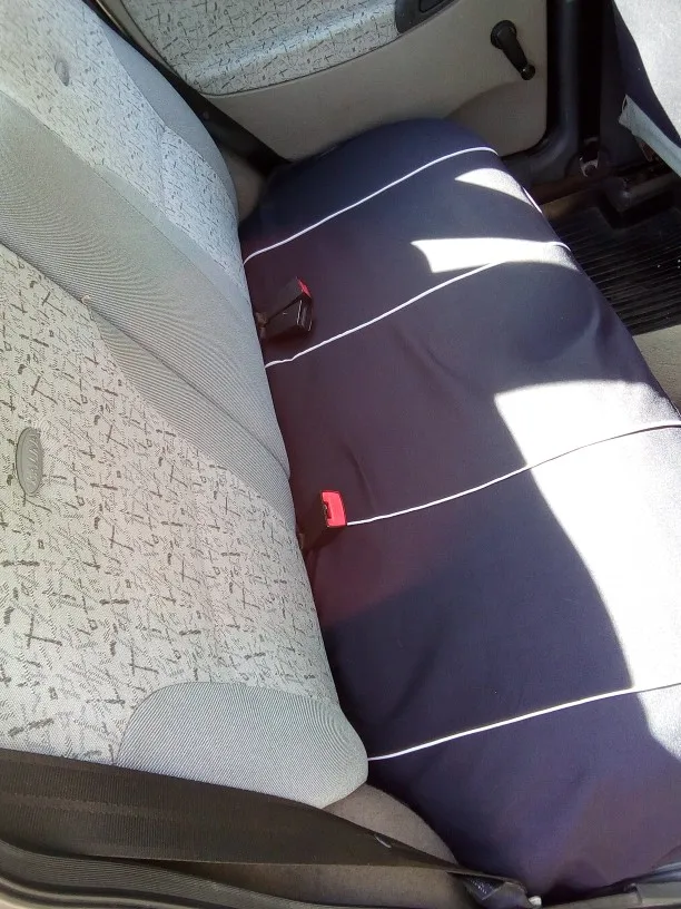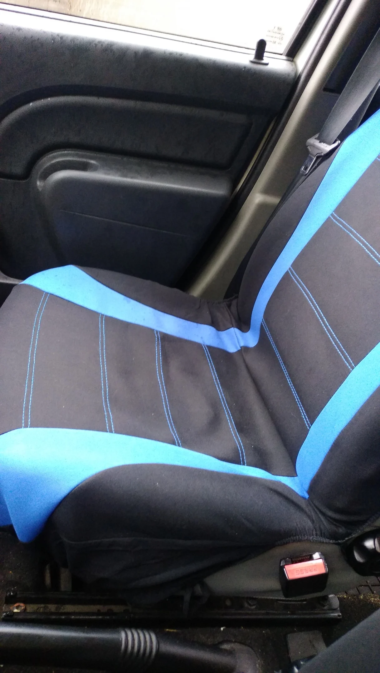 Сели ниплохо, сзади только отверстий для подголовников не было но это пофиг и на фоото сзади просто черный а на деле с полосками, рассчитывал в едином стиле но на деле сзади просто черные с полосками. Тонкие да и фиг с ними на год хватит пади