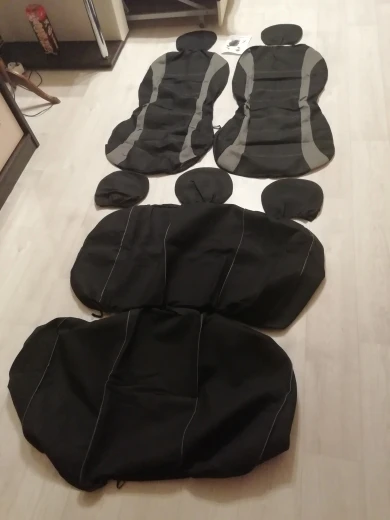 доставка могла быть в плюсе быстрее.доставил курьер.товар соответствует описанию.крючки в комплекте.на рено сандеро сели хорошо но для заднего сиденья нет отверстий под подголовники,хотя получилось их обойти.в общем не критично.сами чехлы для задних подголовников для сандеро немного великоваты.на передние сели отлично.спереди воздушный мешок образуется,но не критично.материал хлипкий,но за эти деньги ничего другого ожидать не стоило.лучше чем было однозначно.по соотношению цена-качество самое то.
