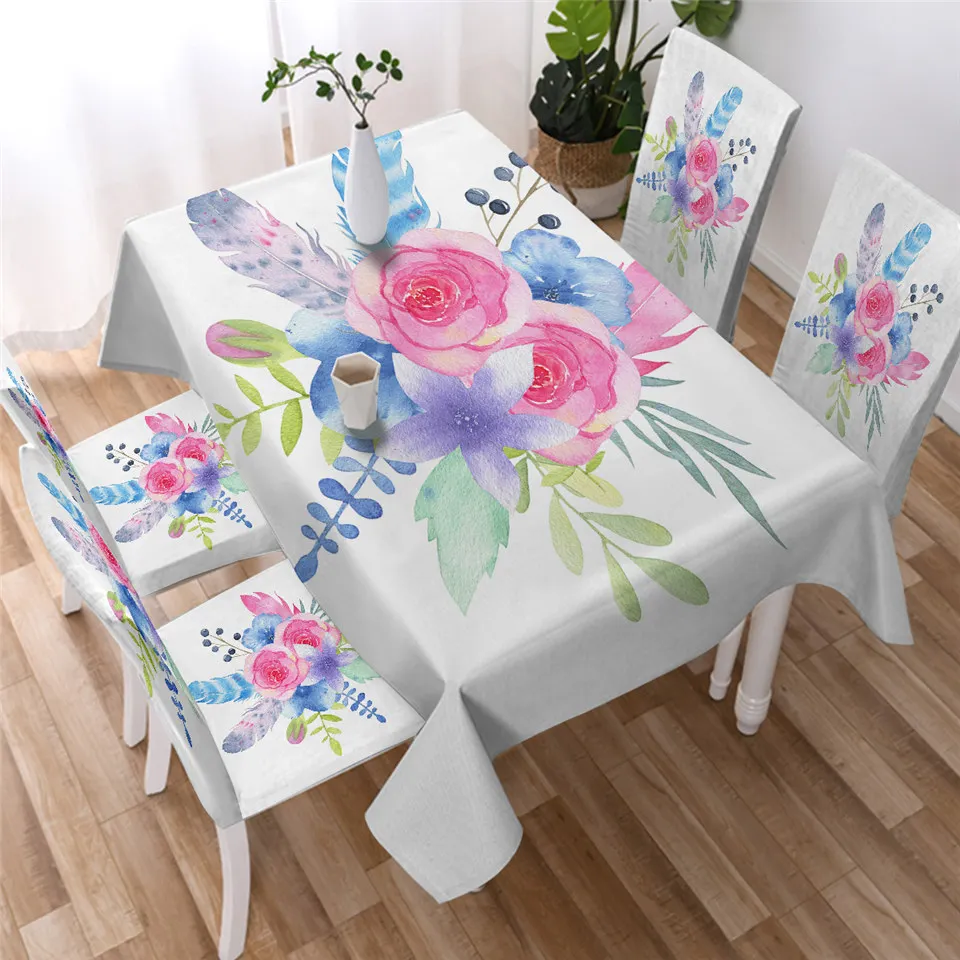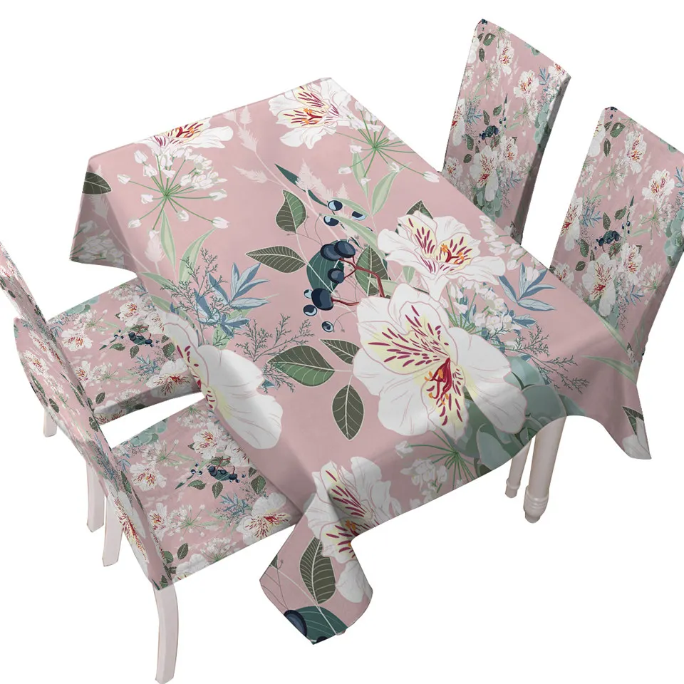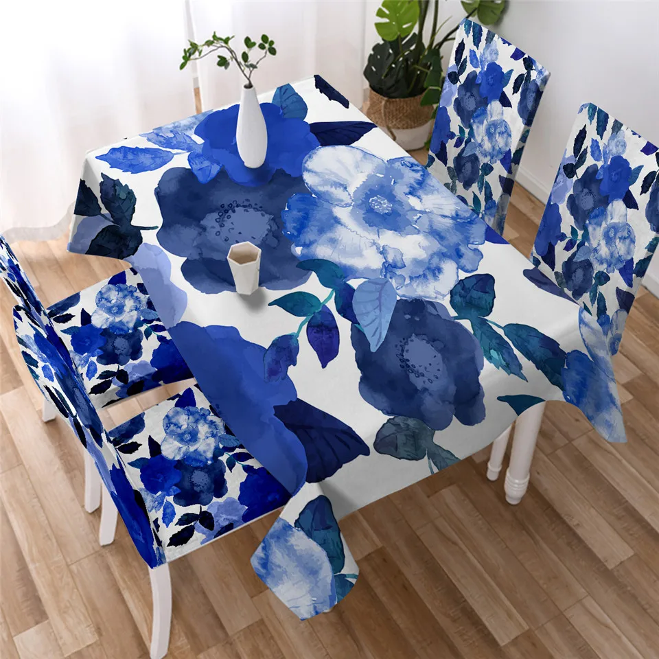 Постельное белье, розетка, скатерть с цветами, водостойкая полиэфирная столовая ткань, акварельные листья, домашний декор, синий стол, льняная ткань, Прямая поставка