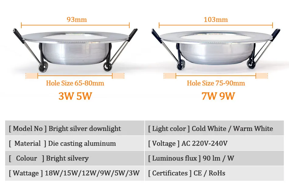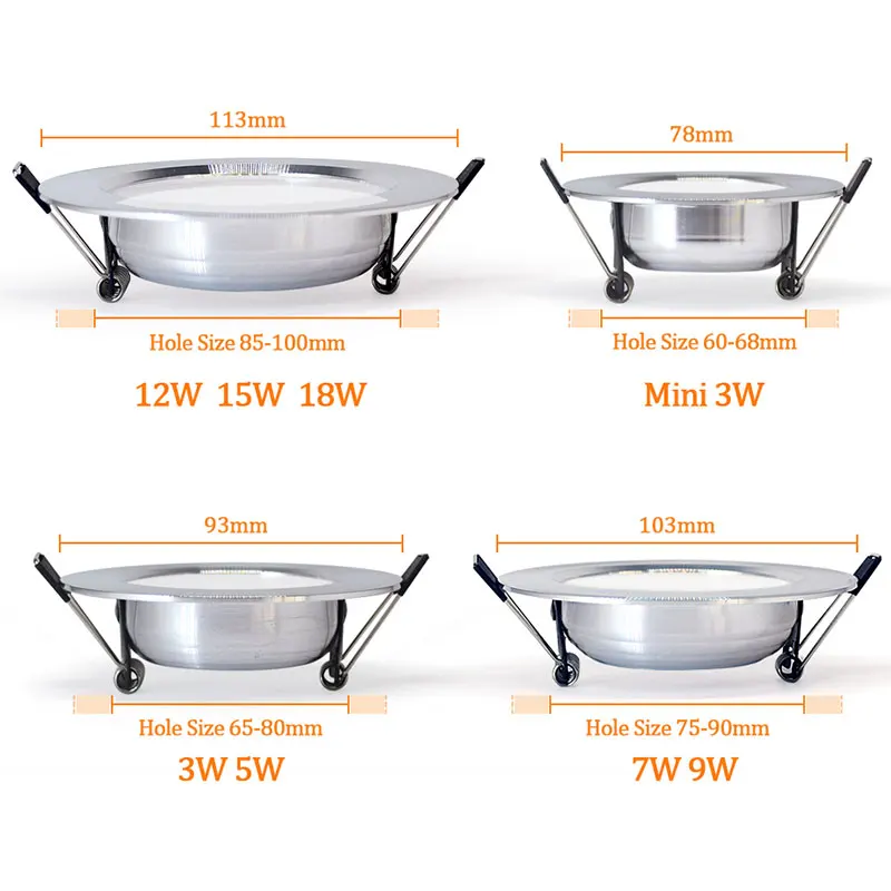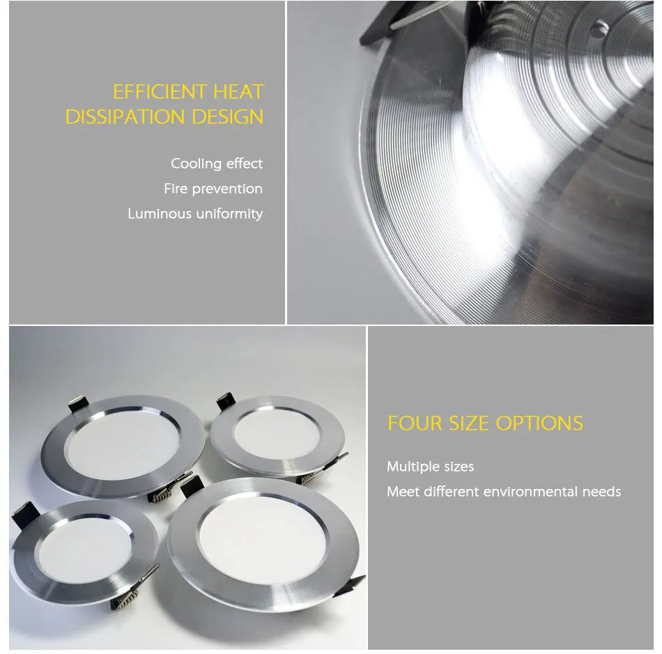 Светодиодный серебристый потолочный светильник 3 Вт 5 Вт 7 Вт 9 Вт 12 Вт 15 Вт 18 Вт, теплый белый холодный белый яркий серебристый светодиодный светильник 220 в 230 в 240 В переменного тока