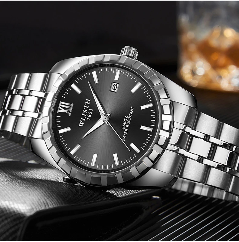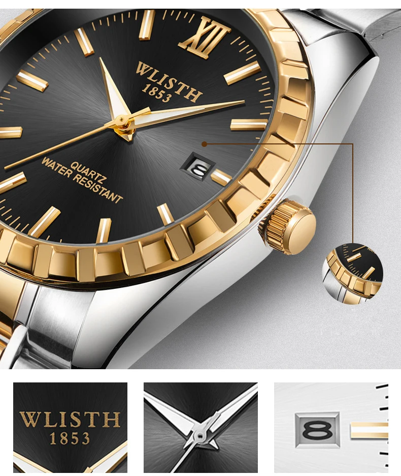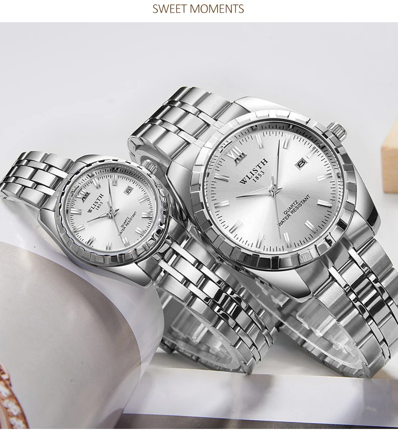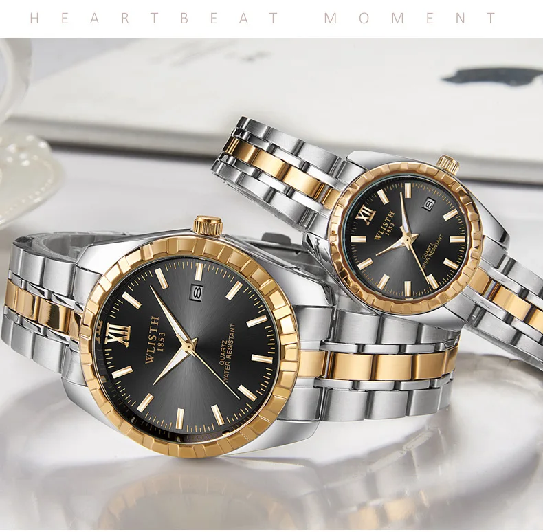 Часы WLISTH для мужчин и женщин, водонепроницаемые, со стальным рем...