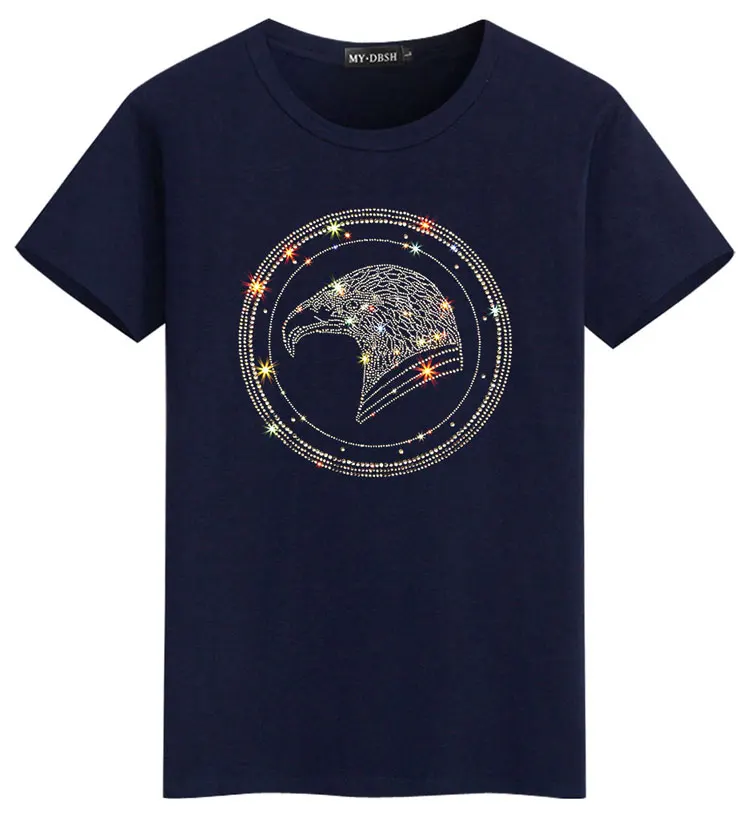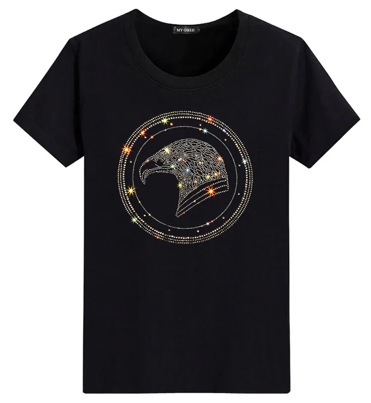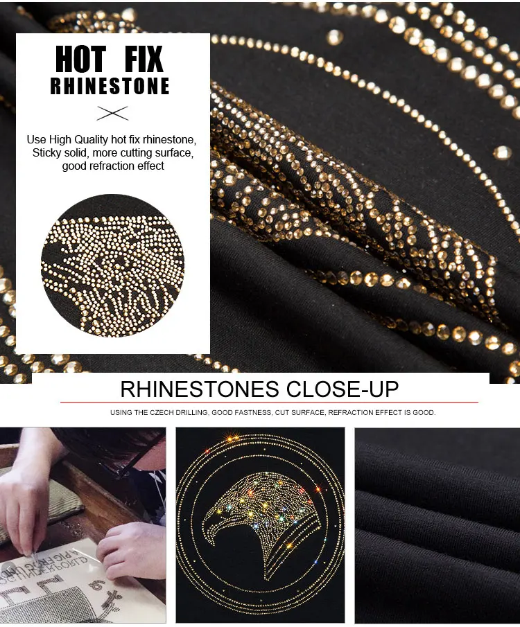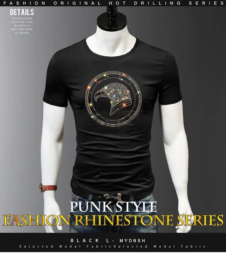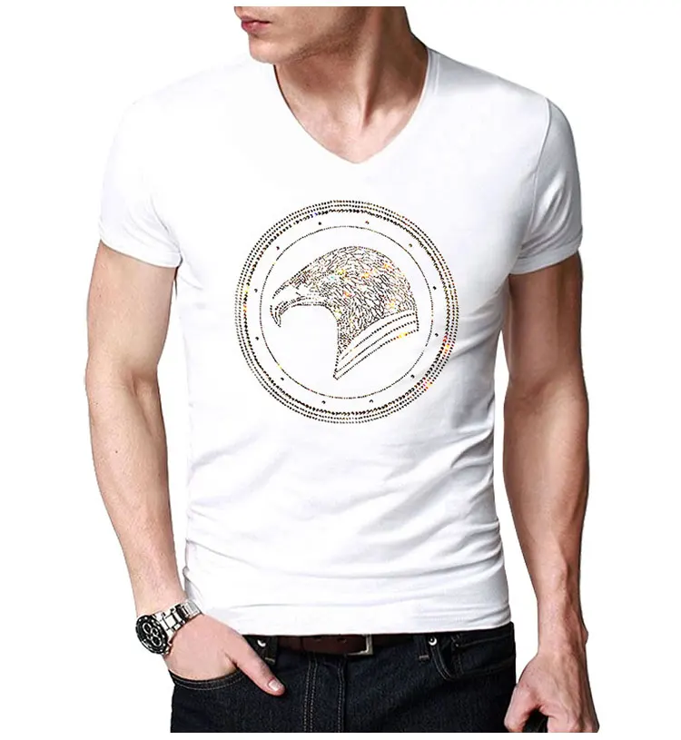 Летний топ птица Стразы футболки для мужчин хлопок Орел алмаз V образным вырезом с коротким рукавом, мужские футболки Модная футболка Размеры 5XL