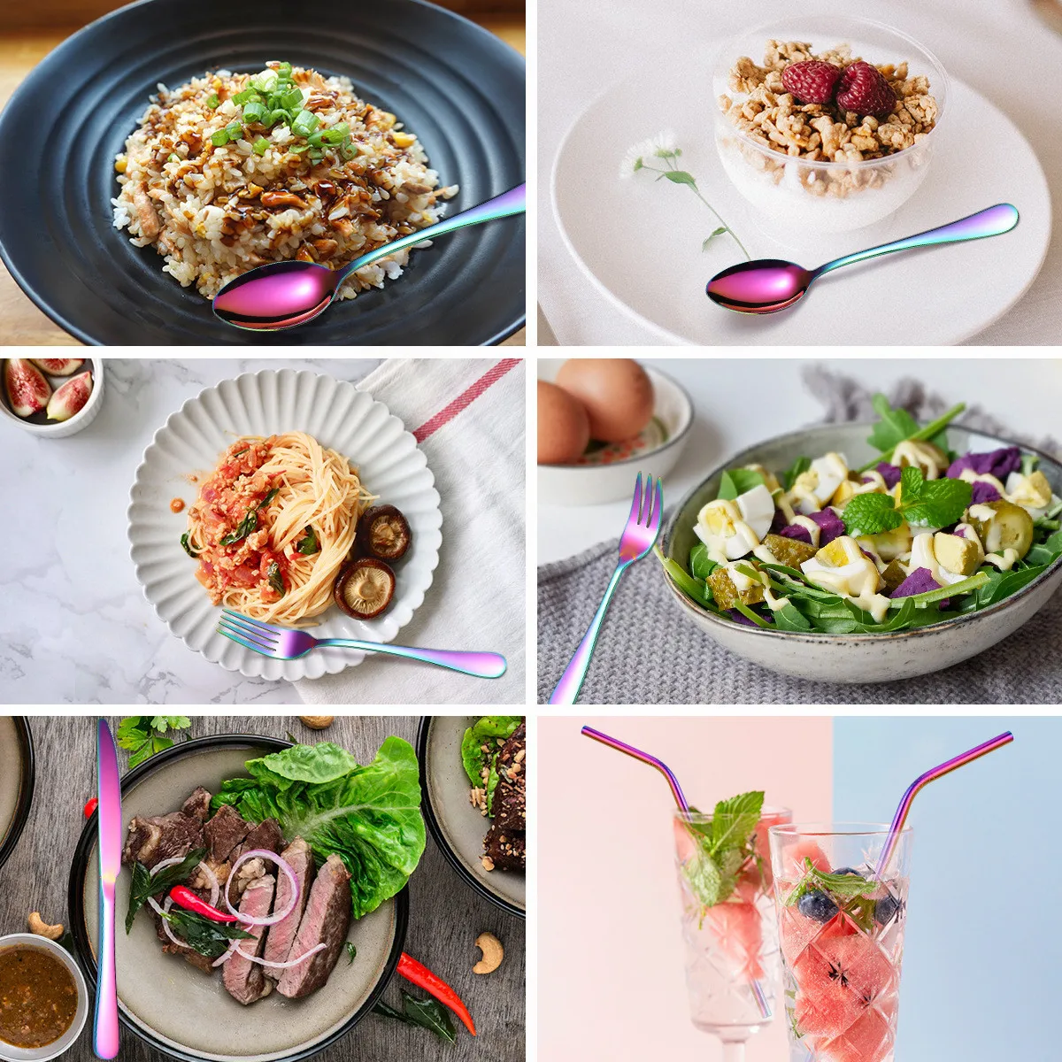 Набор столовых приборов из нержавеющей стали, радужная посуда, дома...