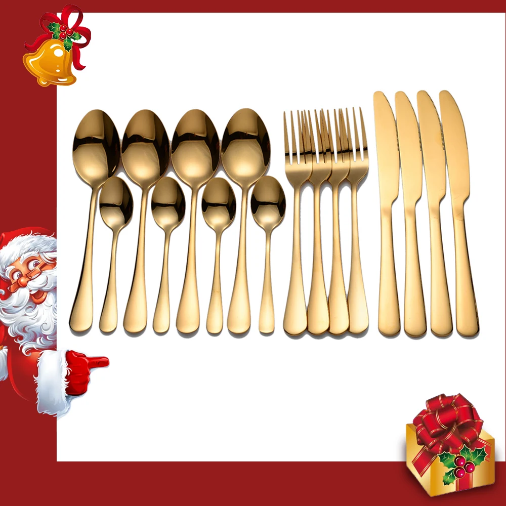 Набор столовых приборов из нержавеющей стали, 16 шт., набор золотых...