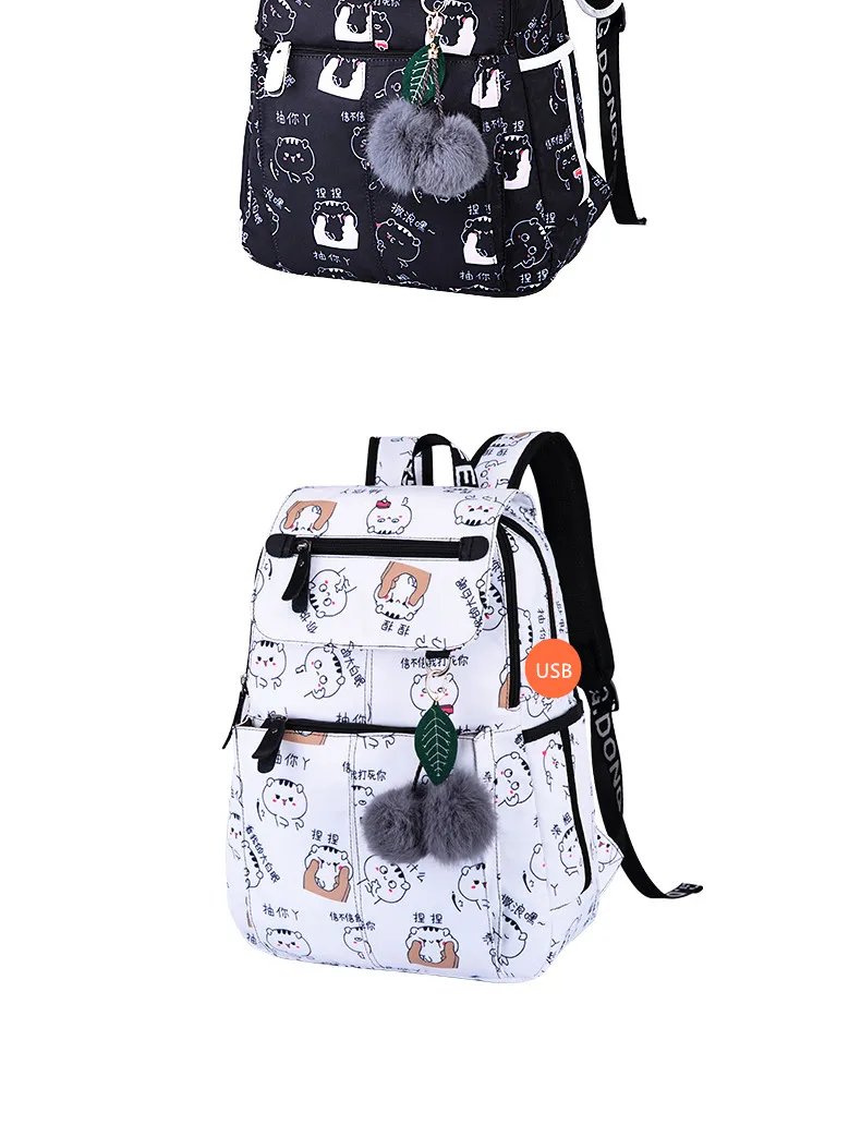 Детские рюкзаки с usb-разъемом, милый школьный рюкзак с котом для девочек, школьные ранцы для девочек, женский рюкзак для ноутбука