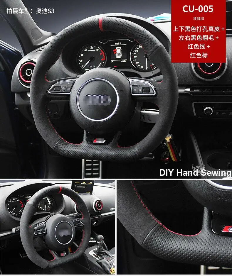 Сшитый вручную черный кожаный чехол на руль автомобиля для Audi S3
