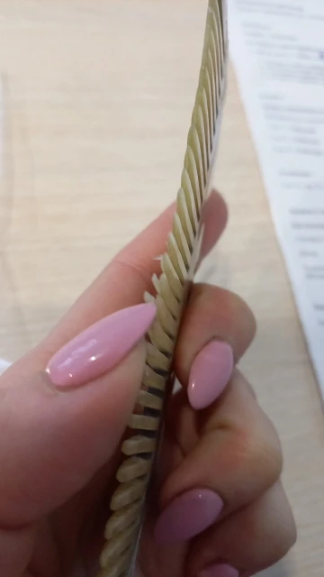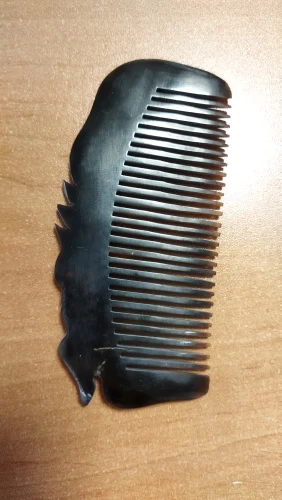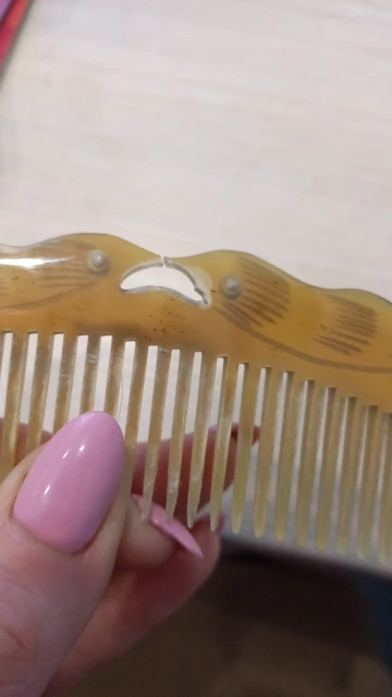 хорошая расчесочка, мне понравилась. вроде натуральный рог, поджигали, пахнет рогом. волосы прочесывает хорошо. сделана аккуратно.