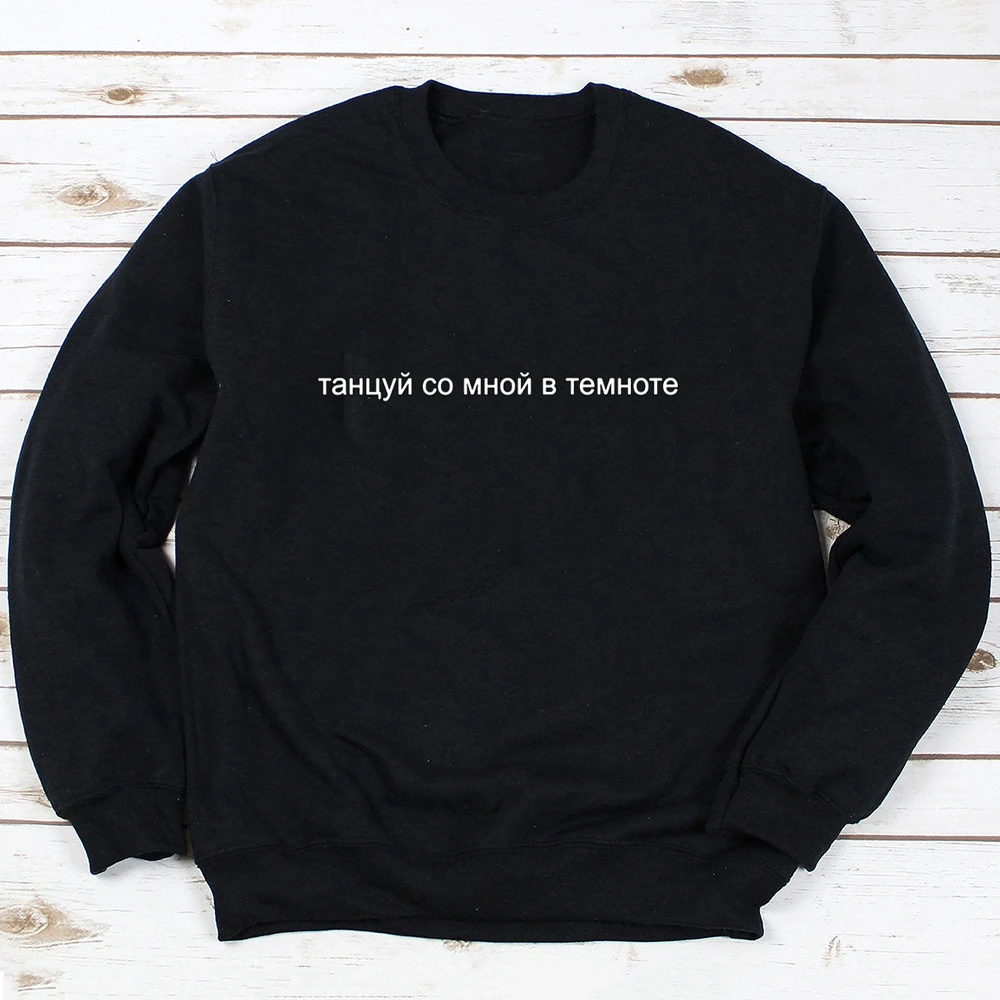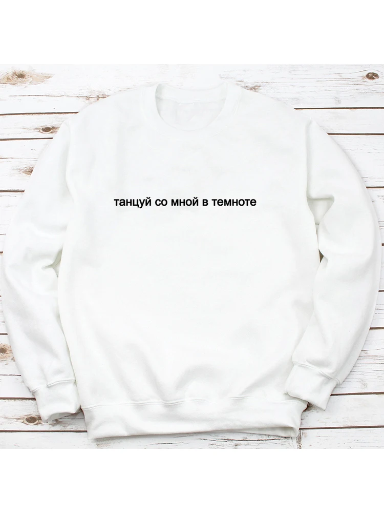 Женская толстовка с надписью DANCE WITH ME IN THE DARK, Толстовка Оверсайз на осень и зиму