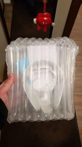 Очень медленная доставка (2 месяца). Упаковано было довольно просто, поэтому коробка пришла чуть-чуть помятой, но содержимое не пострадало, повезло. Комплект полный: массажер, пульт, кабель, руководство на китайском. В работе пока не испытывал, потом, если что, отпишусь.