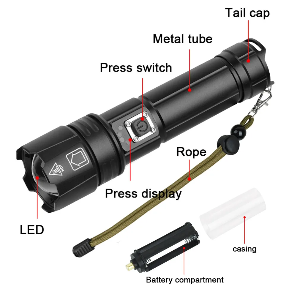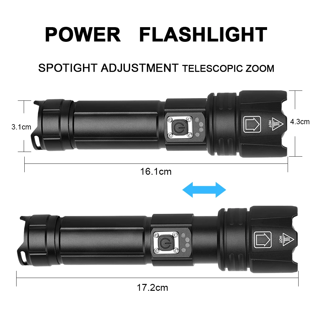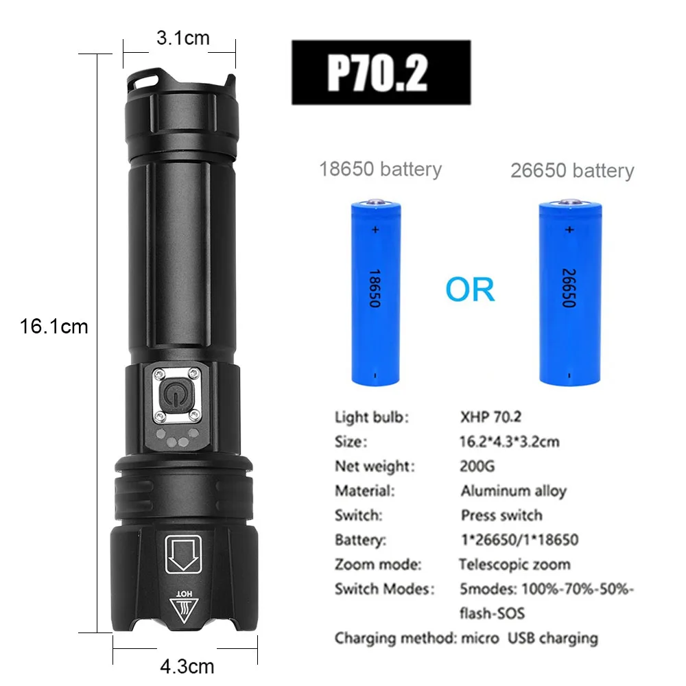 Мощный светодиодный фонарик Anjoet xhp70.2, внешний аккумулятор, usb-зарядка, растягивающийся зум 18650 или 26650, перезаряжаемый фонарик