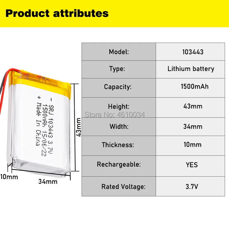 Литий-полимерный аккумулятор высокой емкости 103450 3,7 в 2000 мАч ...