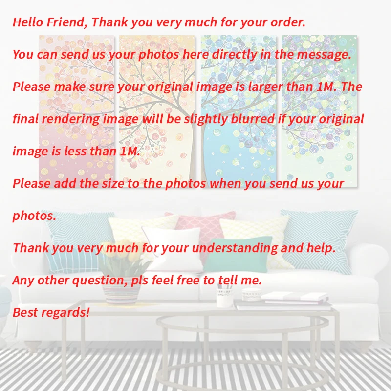 4. Этот холст отличного качества не имеет внутренней и внешней рамки, чтобы снизить стоимость доставки, но этот размер является обычным размером фоторамки, и вы можете легко подготовить рамку.