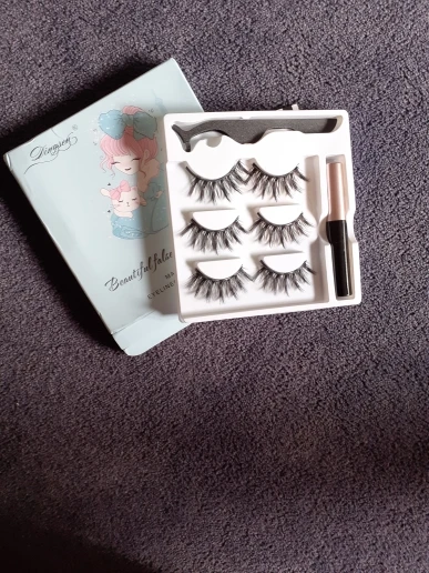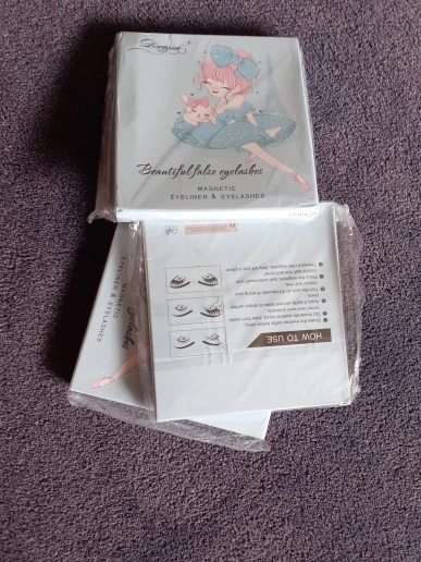 Длительная доставка, незначительная поврежденная упаковка, но не основная. Ресницы выглядят хорошо.