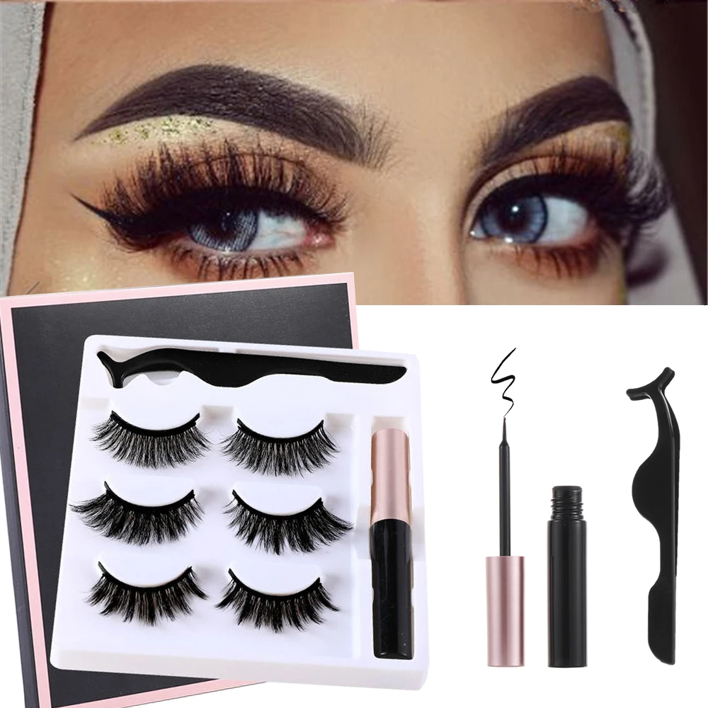 3 пары магнитных ресниц + подводка для глаз + Пинцет Набор долговечных водостойких подводных ресниц для глаз