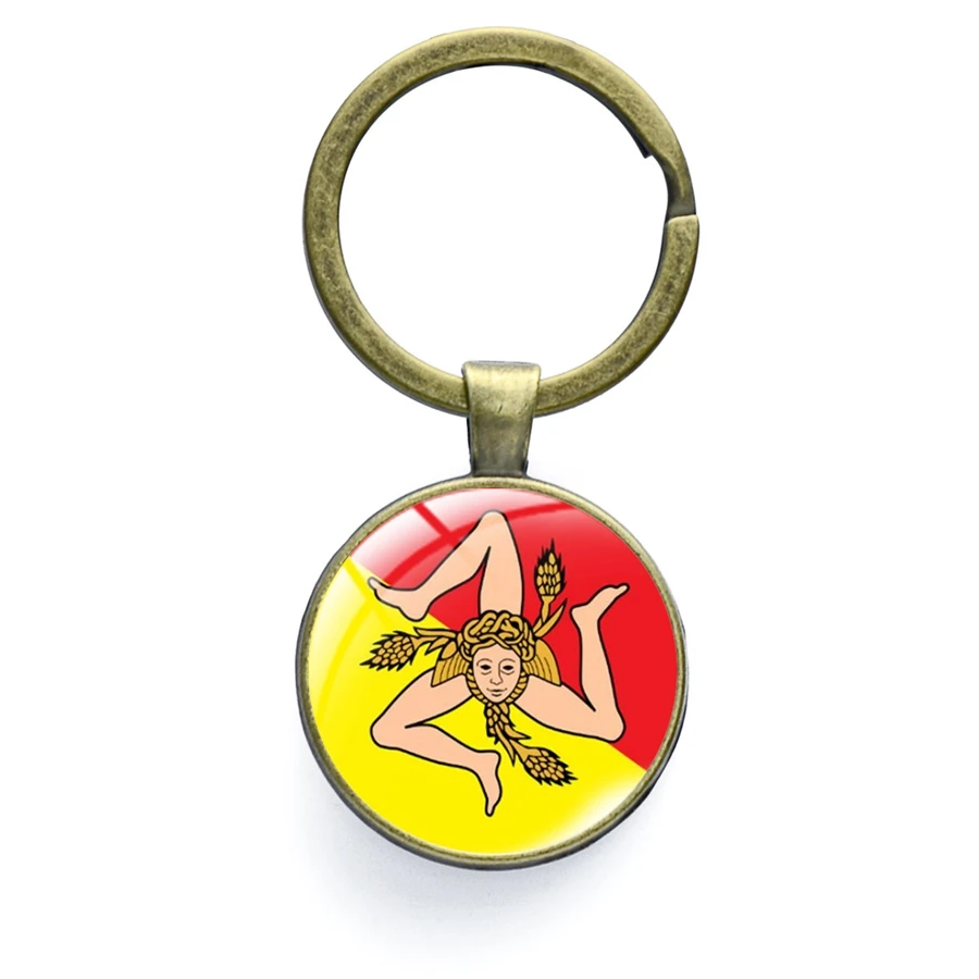 Брелок с изображением Сицилии Trinacria, стеклянный круглый металлический брелок с изображением, лучший подарок для друзей, безделушки