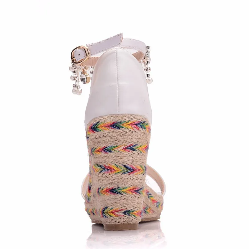 BEYARNEженские мягкие свадебные туфли с кисточками и бусинами; Женские босоножки на платформе с открытым носком; Большие размеры 33-42; Женские свадебные туфли в богемном стиле со стразами
