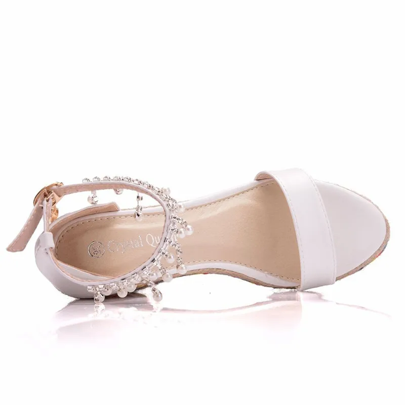 Женские свадебные босоножки на платформе, белые босоножки с кисточк...