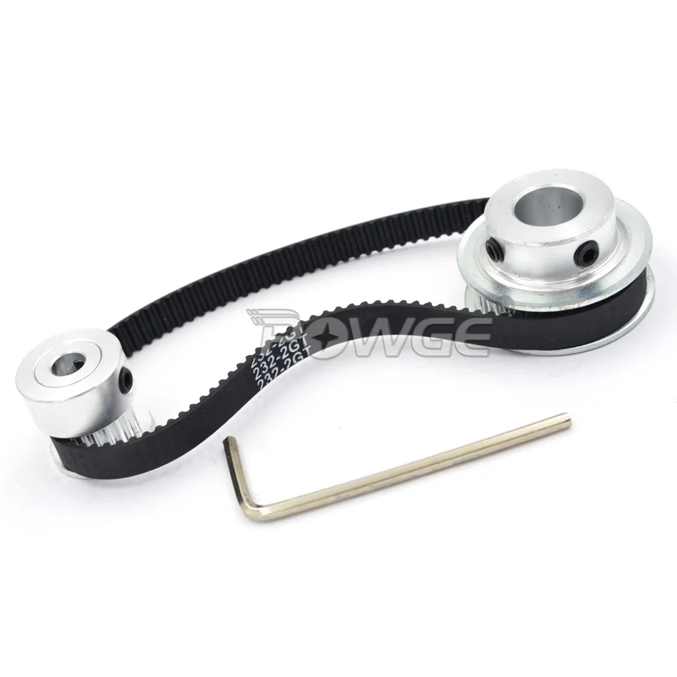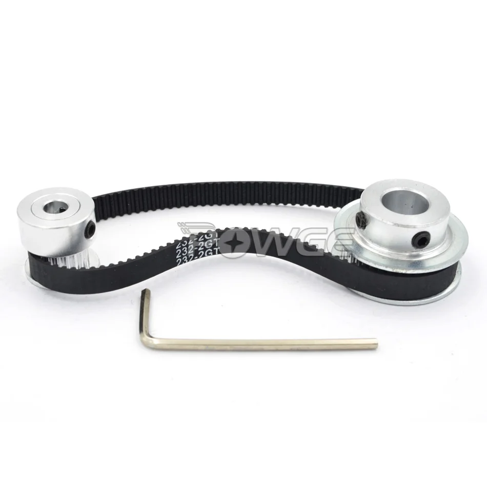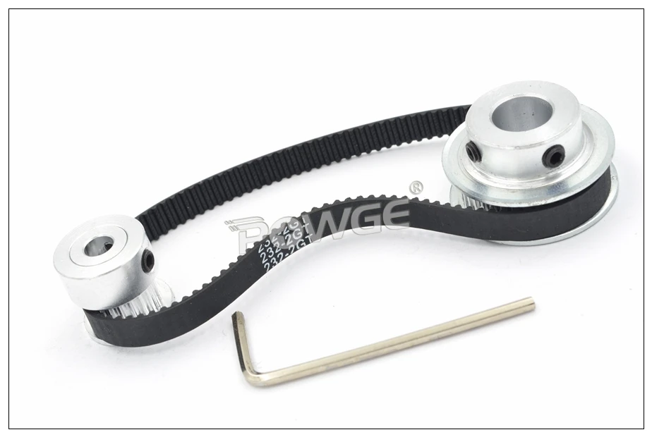 Package Listing Includes as Follow : 1pcs x 16Teeth GT2 Aluminum Pulley 4/5/6mm Bore1pcs x 48Teeth GT2 Aluminum Pulley 5/6/6.35/8/10/12mm Bore4pcsx M4/M5 setscrews (Free)1pcs x Allen Key (Free)1pcs x 232-2GT Rubber Closed-Loop Belt 6/9mm Width