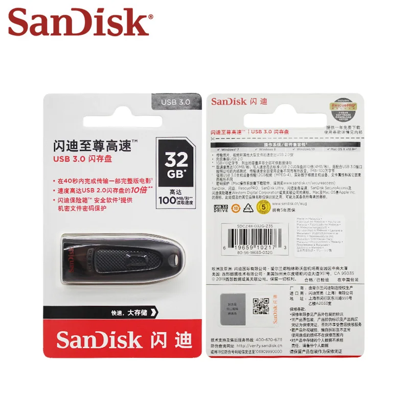 Оригинальный высокоскоростной флеш-накопитель SanDisk Ultra USB 3,0...