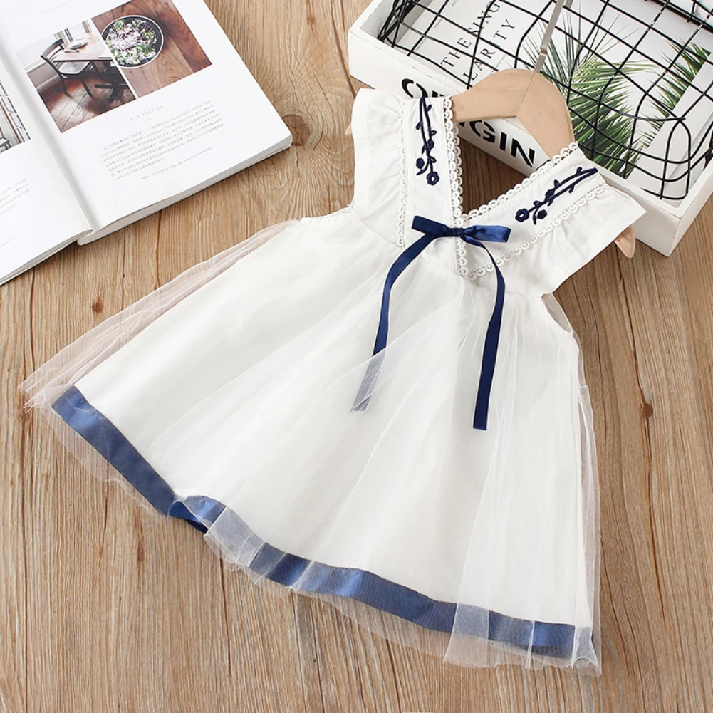 Одежда принцессы для девочек Детские платья с бантом из тюля без рукавов