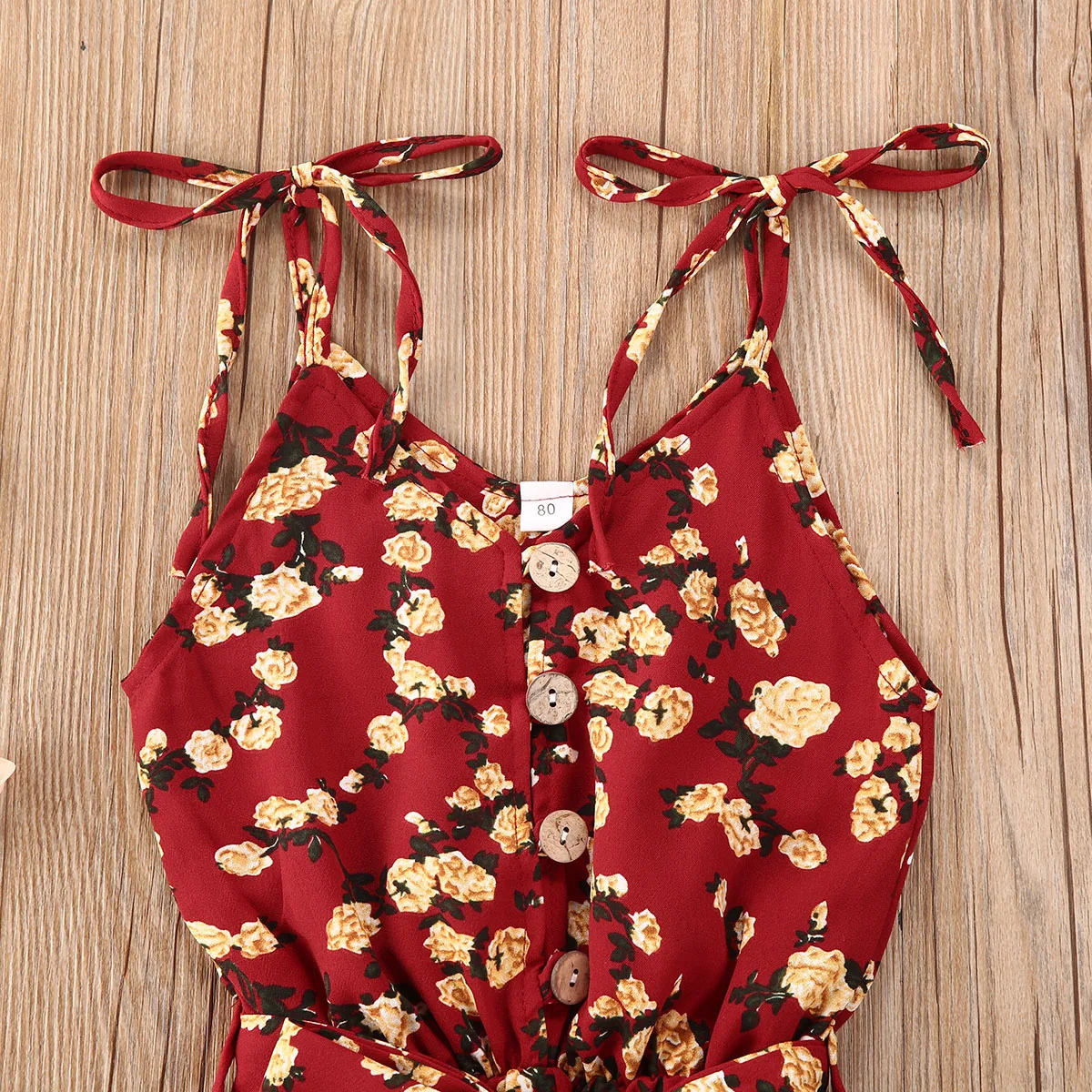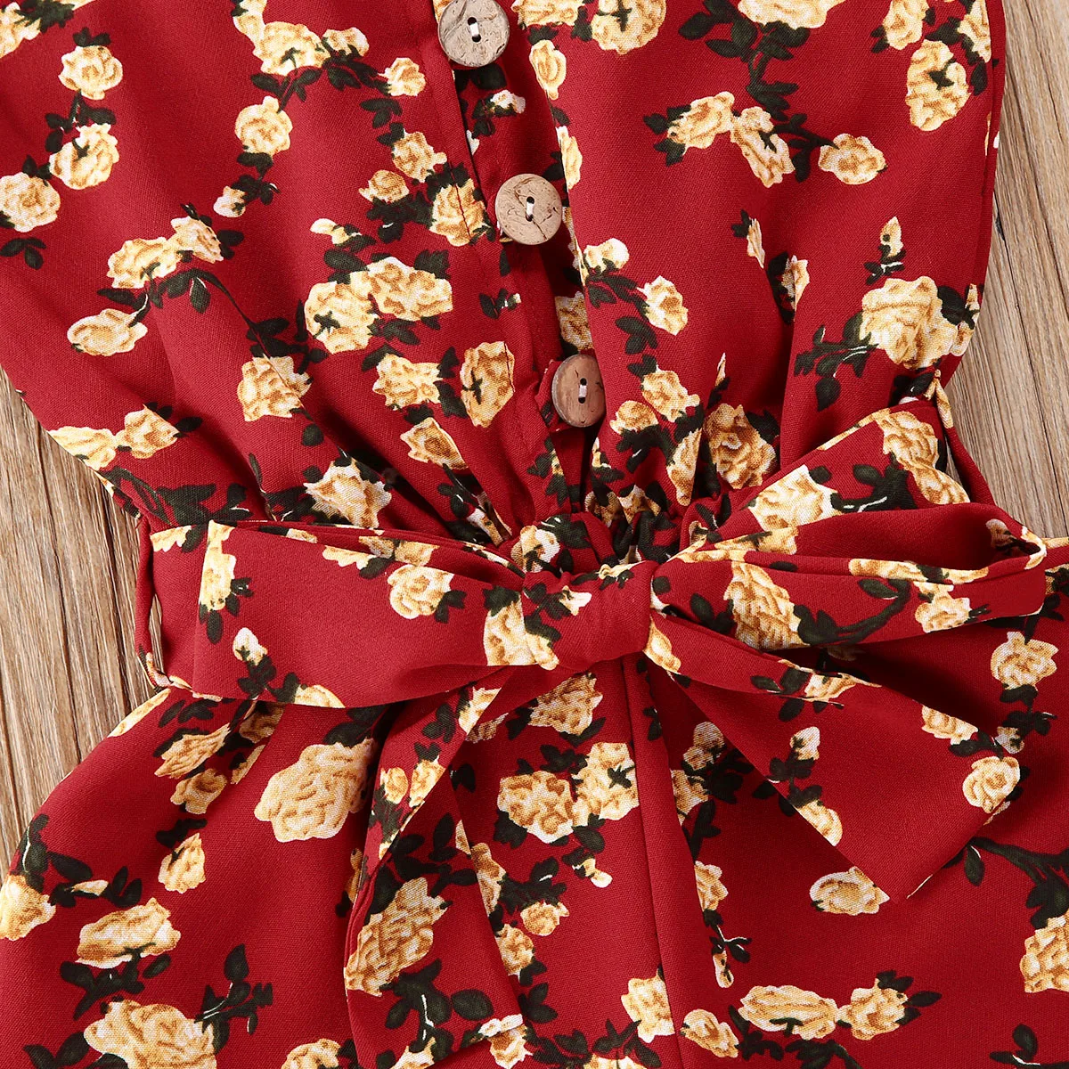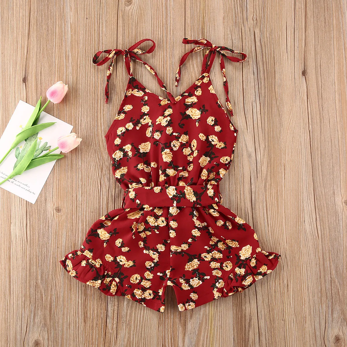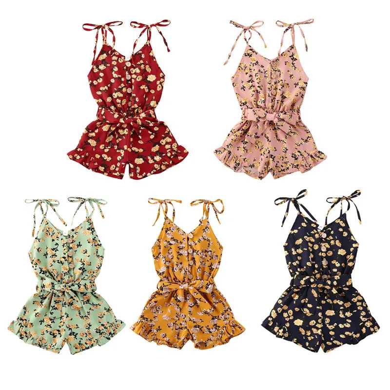 От 1 до 6 лет, летние милые комбинезоны для маленьких девочек, однобортные шифоновые Комбинезоны без рукавов с цветочным принтом, 5 цветов