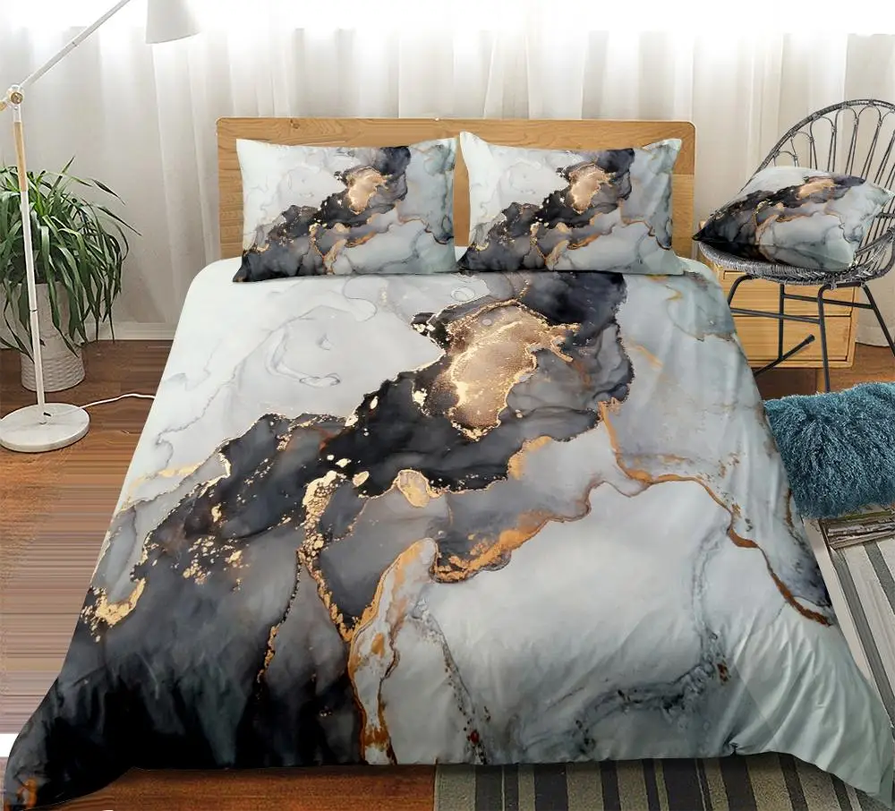 Комплект постельного белья с синим мрамором, с пододеяльником и серой текстурой, домашний текстиль для мальчиков и девочек, современное постельное белье