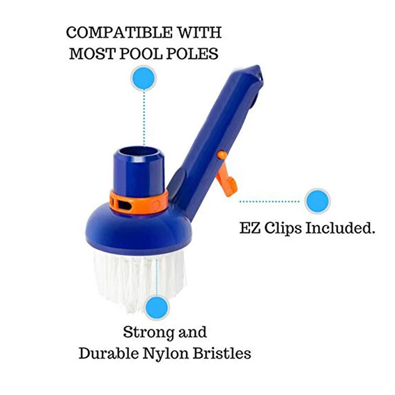 Компактный размер и тонкие нейлоновые щетинки позволяют легко чистить бассейн. Отличный дополнительный инструмент для обслуживания Вашего бассейна.