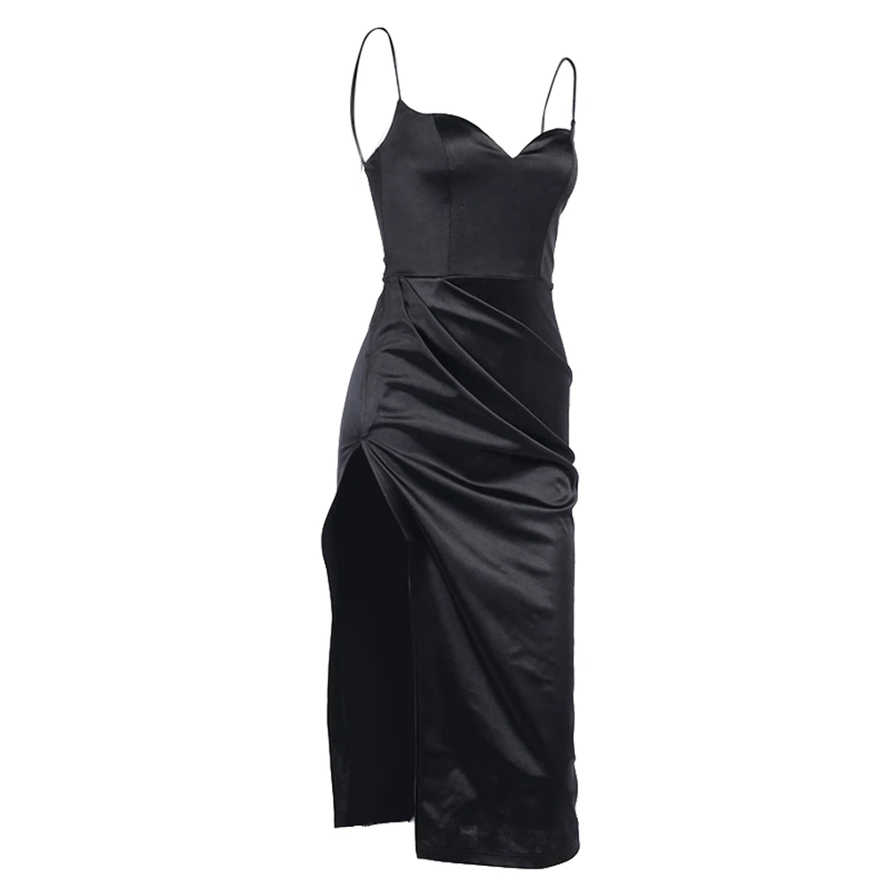 Черное атласное сексуальное платье для женщин, длинное платье на бр...